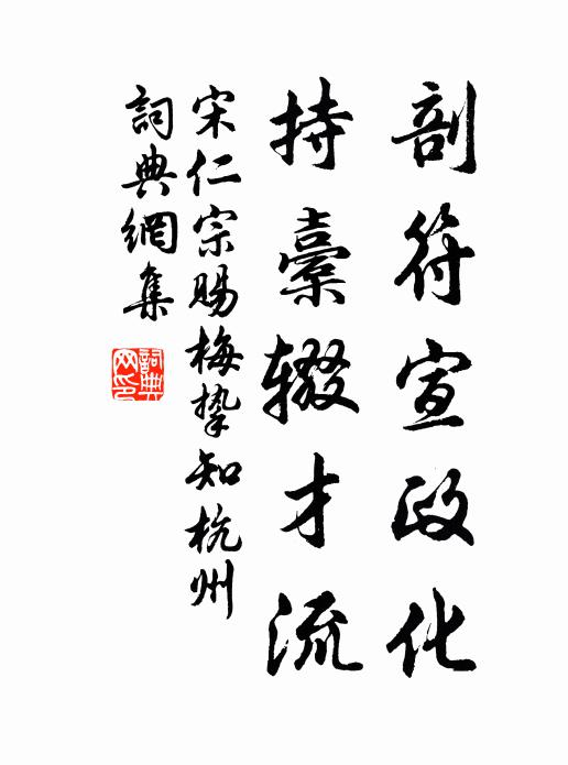 古詩文歷史字典書法欣賞書法字典國語詞典說文解字康熙字典古漢語字典剖符宣政化,持橐輟才流宋仁宗 《賜梅摯知杭州》名句出處出自宋代宋仁宗的《賜梅摯知杭州》全文:地有湖山美,東南第一州。剖符宣政化,持橐輟才流。暫出論思列,遙分旰昃憂。循良勤撫俗,來暮聽歌謳。宋仁宗詩詞大全名句書法欣賞剖符宣政化,持橐輟才流書法作品宋仁宗名句,賜梅摯知杭州名句名句推薦渠能志游夏,我可吊沅湘趙蕃《夜憶逸》一枝長伴荔枝來韓元吉《南柯子/南歌子》下車歲已成,飾馬閒餘步張說《游龍山靜勝寺》請室冤魂叫不聞,神丘隆碣謾遺文樂雷發《詠史六首班固》一渠春碧弄潺潺,密竹繁花掩映間吳融《新安道中玩流水》智藏不會,海兄不知釋子益《偈頌七十六首》松菊正酬閒客意,煙波真似主人情張鎡《游石湖》鬚髮衰殘,空山雪寒釋正覺《禪人並化主寫真求贊》漠漠寒煙暗蓼汀,江涵雁影不分明黃庚《秋陰》周密無間,筆法繇此推也岳珂《曾宣靖類見帖贊》悠悠辭鼎邑,去去指金墉楊炯《途中》左揀牛溲,右選馬勃釋妙倫《偈頌八十五首》記那人小扇、撲得歸來,繡在羅襟潘汾《孟家蟬(蝶)》飲馬早聞臨渭北,射鵰今欲過山東吳融《金橋感事》藥物扶持疾漸平,布裘絮帽出柴荊陸游《步至近村》詩詞推薦壬辰七月十六日侵晨真率會,石湖路中書事范成大〔宋代〕白葛烏紗稱老農,溪南溪北水車風。稻頭的皪粘朝露,步入明珠翠綱中。誡子吟邵雍〔宋代〕雞能警旦,馬能代行。犬能守御,牛能力耕。有稟天地,萬物之靈。妒賢嫉能,不如不生。陽台路(林鐘商)柳永〔宋代〕楚天晚,墜冷楓敗葉,疏紅零亂。冒征塵、匹馬驅驅,愁見水遙山遠。追念少年時,正恁鳳幃,倚香偎暖。嬉遊慣題王岩起樂齋三首劉子翬〔宋代〕我亦云根結小房,年來與世略相忘。定知可蛻紛華事,不及弦歌氣味長。採桑子晏幾道〔宋代〕高吟爛醉淮西月,詩酒相留。明日歸舟,碧藕花中醉過秋。文姬贈別雙團扇,自寫銀鉤。散盡離愁,攜得清風出畫入獄第九十九文天祥〔宋代〕陰房鬼火青,白日亦寂寞。自非曠士懷,居人莽牢落。午坐後亭鄧剡〔宋代〕隔簾遲日午風微,社燕驚寒未肯歸。讀了丹經成默坐,時時一片杏花飛。寄王良佐陶夢桂〔宋代〕高高林木帶煙霞,短短茅檐寄水涯。盡有清風疎種竹,苦無傾家蕩產地密栽花。雲停栗里淵明屋,月滿剡溪安道家鳳棲梧(五之二)張綱〔宋代〕雨洗軒庭迎晚照。 * 才芳,未覺秋光老。怪底烘堂添語笑。姮娥此夜來蓬島。獻壽新詞誰解道。滿眼兒孫,著語館中新蟬劉騭〔宋代〕搖落何須宋玉悲,齊亭遺恨莫沾衣。池中菡萏香全減,井上梧桐葉乍飛。風促箏聲隨斷續,日移磚影自光輝。宜秋