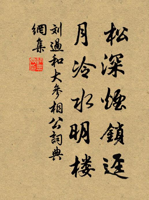 古詩文歷史字典書法欣賞書法字典國語詞典說文解字康熙字典古漢語字典松深煙鎖逕,月冷水明樓劉過 《和大參相公》名句出處出自宋代劉過的《和大參相公》全文:松深煙鎖逕,月冷水明樓。日漲滄溟窄,山陰古木秋。琴書超物表,氣宇識神遊。突兀東南壯,乾坤第一流。劉過詩詞大全名句書法欣賞松深煙鎖逕,月冷水明樓書法作品劉過名句,和大參相公名句名句推薦先生何年創丹室,寶篆灰寒門牖密白玉蟾《道過成蹊菴偶成舊風一篇》宣令遍詢坊巷中,旋使王人捕入宮四錫《李暮吹笛歌》客行河水南,客行河水北戴復古《客行河水東》洗盡古今人不倦,將知醉後豈堪夸元稹《一字至七字詩·茶》先生有志不在此,出處每談徐孺子王冕《劍歌行次韻》曾子當年多一唯,顏淵終日只如愚林季仲《贈虞教授別》金印累累佩陸離辛棄疾《定風波(自和)》得以慰營魂謝靈運《石門新營所住四面高山回溪石瀨茂林修竹詩》多羨王居士,心閒事事幽何偁《臞庵五首》十二樓前花正繁,交枝簇蒂連壁門溫庭筠《觱篥歌(李相妓人吹)》卻辭丹陛鎖南宮,兔鶴欲攜俱不暇王珪《和永叔思白兔戲答公儀憶鶴雜言》古來悲不盡,況我本多情吳融《端居》妾小不解事,戲劇珠樓旁張鎡《秦女行》簡編多聖賢,要在謹相俲鄭剛中《和趙晦之司戶三首》故人亭前合江處,暮夜檣竿矗沙尾范成大《湘口夜泊,南去零陵十里矣。營水來自營道,》詩詞推薦雜曲歌辭樂世白居易〔唐代〕管急絲繁拍漸稠,綠腰宛轉曲終頭。誠知樂世聲聲樂,老病人聽未免愁。懷仙橋林表民〔宋代〕晴雷書夜激奔湍,澗草岩花亦耐寒。劉阮茫茫空仰止,恐乘風月一鞭鸞。郴江百詠並序上仙閣阮閱〔宋代〕曲檻危梯紫翠中,蘇仙宅畔古城東。不須更著登山屐,萬岫千峰一日窮。赴新安別梁侍郎劉長卿〔唐代〕新安君莫問,此路水雲深。江海無行跡,孤舟何處尋。青山空向淚,白月豈知心。縱有餘生在,終傷老病侵。送應武論粹廬陵方岳〔宋代〕乞粹廬陵郡,予為第一人。天慳終未肯,人好自相親。諸老詩書在,平園草木春。鷗朋嘲薄分,山屐蝕京塵。留別徐斯遠時斯遠將赴朱晦庵之約三首趙蕃〔宋代〕共有山林趣,相期問學功。一官重此去,三逕幾時同。我鬢因詩白,君顏非酒紅。從游縱有日,羸疾柰相攻。初春懷成都陸游〔宋代〕我昔薄游西適秦,歸到錦州逢早春。五門收燈藥市近,小桃妖妍狂 * 。霓裳法曲華清譜,燕妒身輕鶯學語。歌舞訪陶公舊宅白居易〔唐代〕垢塵不污玉,靈鳳不啄膻。嗚呼陶靖節,生彼晉宋間。心實有所守,口終不能言。永惟孤竹子,拂衣首陽山。夷齊題大茲寺兼簡照講師林表民〔宋代〕來從金地過銀地,智者修禪古道場。疊嶂倚空圍日月,穹聳松壑飽風霜。碑文多是唐人刻,經卷猶陰煬帝藏。偶值春帖子詞二十首皇帝合六首歐陽修〔宋代〕陽進升君子,陰消退小人。聖君南面治,布政法新春。