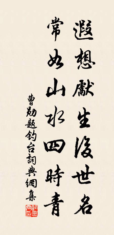 古詩文歷史字典書法欣賞書法字典國語詞典說文解字康熙字典古漢語字典遐想先生後世名,常如山水四時青曹勛 《題釣台》名句出處出自宋代曹勛的《題釣台》全文:遐想先生後世名,常如山水四時青。因知功業成何事,歸美惟消猶帝星。名句書法欣賞遐想先生後世名,常如山水四時青書法作品曹勛名句,題釣台名句名句推薦青門解袂,畫橋回首,初沈漢佩,永斷湘弦賀鑄《斷湘弦/萬年歡》一出山來不自由辛棄疾《瑞鷓鴣》百萬生靈枯冢骨,三千世界戰場塵方回《隱者》文如吐鳳筆如龍,珍重華林墨尚濃魏閒《太諫詩筆因題絕句》理方因靜勝,道不在言傳釋文珦《懷溪雲壑》當修進,煉木金水火,土證無餘馬鈺《滿庭芳 和靄戒師師父》忌蟪蛄之蚤吟江淹《山中楚辭》偏坐金鞍調白羽,紛紛射殺五單于王維《雜曲歌辭少年行四首》天形四垂接,曙色十分添強至《某近辱諸公光和前篇鄙思未已復自次元韻奉呈》多謝芳心惓戀,羅結文鴛蹴劉塤《六么令(雲舍趙使君同賦)》騷人章句多懷古,陶令田園且養慵楊億《劉太丞仲宣歸華山》玉座如存,永隔慈容范祖禹《六州》敗葉走庭除,修竹掃蒼楹曾瑞《【商調】集賢賓_宮詞悶登樓》不及林中反哺烏,日暮歸來卻同集李流謙《送兄長赴蓬州職官》擬杯當曉起,呵鏡可微寒李商隱《曉起》詩詞推薦送廬山衲僧貫休〔唐代〕飛錫下崆山兇,清高世少雙。凍天方篩雪,別我去何邦。燒繞赤烏亥,雲漫白蚌江。路人爭得識,空仰鬢眉龐。省中直舍因敲新懷周元吉三首楊萬里〔宋代〕老竹堅剛幼竹柔,此君年少也風流。錦衣脫體未全瘦,雪粉圍腰猶半愁。題竹張嵲〔宋代〕細葉蕭蕭擁瘦枝,石間新筍迸根遲。輕筠為使兒童護,待看娟娟解籜時。夜坐強至〔宋代〕城裡更籌急,窗邊竹影微。掩書雙淚迸,撫事寸心違。歲月辜華紱,風霜感彩衣。陶潛空自賦,何處有田歸。丁卯春雪呈同僚孔武仲〔宋代〕經時無甘澤,帝為元元憂。新正得一雪,尚可期有秋。狂風東北來,浩浩舉山丘。飛霰為先驅,繁英已綢繆。堆深丘知府輓詩杜范〔宋代〕弟兄鼎譽人爭羨,富貴隨時報未均。領閣清班非不遇,持麾重選遽成塵。世誇人物今何在,志在詩書竟莫伸。笑語滴滴金(晚眺)王質〔宋代〕陰陰濕霧霜無汁。江氣逼、樹聲滴。荒林只見夕陽入。誰喚晚煙集。漁翁猶把釣竿執。蓑共笠、時時葺。風剛浪猛金李嶠〔唐代〕南楚標前貢,西秦識舊城。祭天封漢嶺,擲地警孫聲。向日披沙淨,含風振鐸鳴。方同楊伯起,獨有四知名。用強甫蒙仲韻十首劉克莊〔宋代〕玉堂豈必勝茅齋,誤得虛名與謗偕。法吏淬磨真出角,先生度量莫窺涯。謗書堪醜毋庸辨,悶賦雖工未易排。已設壽教授李劉〔宋代〕襟懷錦繡富多文,人物冰壺絕點塵。太華昨宵方誕呂,姑蘇今日恰生申。堂萱呈瑞年年綠,壇杏逢春日日新。更為