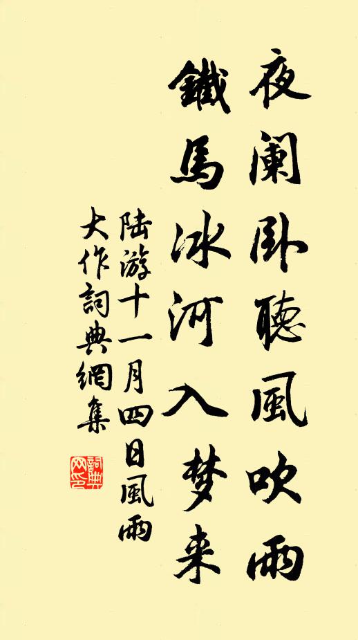 夜闌臥聽風吹雨,鐵馬冰河入夢來。