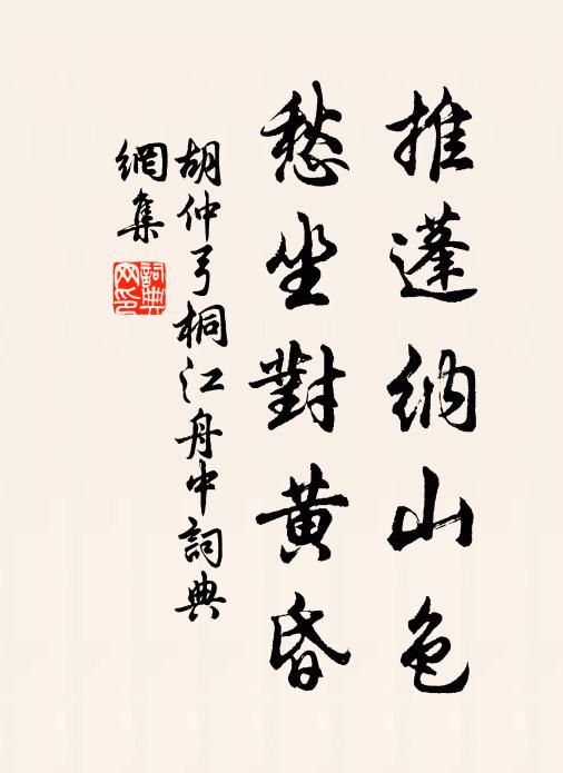 古詩文歷史字典書法欣賞書法字典國語詞典說文解字康熙字典古漢語字典推蓬納山色,愁坐對黃昏胡仲弓 《桐江舟中》名句出處出自宋代胡仲弓的《桐江舟中》全文:推蓬納山色,愁坐對黃昏。雨過天無翳,舟行水有痕。鐘聲來遠寺,犬吠隔煙村。柳下漁人屋,收罾早閉門。名句書法欣賞推蓬納山色,愁坐對黃昏書法作品胡仲弓名句,桐江舟中名句名句推薦筋骸已暢心無用,轉愧窗間映雪人楊蟠《地爐》秋日已過半,林無一葉飛陳德翔《漳浦偶成》告老已能官及子,頒恩更喜爵榮親姜特立《劉益之判院挽章》山空四無人,白眼問青天劉宰《贈江西吳定夫》春風一路百花開,踏遍空山特地來王炎《至灌溪予瑰老二首》諸侯若解尊天子,列國何因次第亡周曇《春秋戰國門再吟》何必三千徒,始壓戎馬氣杜甫《題衡山縣文宣王廟新學堂,呈陸宰》道皇華使者,光風灑落楊元亨《沁園春(無為燈夕上陸史君)》似儂憔悴更誰知呂本中《虞美人》卻笑向來師尚父,磻溪不老老營丘劉克莊《八十吟十絕》先生兩耳不須洗,利名不到先生耳陸游《飲酒》身如瘦鶴已伶俜,一臥兼旬更有零趙師秀《病起》更無人處增清絕毛並《醉落魄/一斛珠》醉鄉歸去疑無路,詩筆拈來似有神黃公度《雨後春遊》小作王官試,還為幕府留趙蕃《挽施文叔三首》詩詞推薦濟川堂張舜民〔宋代〕河流便當城,峻岭借為屏。疑在金山寺,憑欄看北泠。送程給事知越州何正臣〔宋代〕立京金城漳海邊,從來經制祗茫然。一千里候無宵警,十萬人家自晏眠。異域早聞回陳馬,將車從此罷樓船。功成吳江華嚴塔院贈了洪講師葉適〔宋代〕具區以為瀦,吳江以為裨。自專一方浸,盡納海所遺。逝川無發嘆,麗澤可求師。昔人會心地,今為魚鳥資。飛者小鳥篇,上裴尹劉長卿〔唐代〕藩籬小鳥何甚微,翩翩日夕空此飛。只緣六翮不自致,長似孤雲無所依。西城黯黯斜暉落,眾鳥紛紛皆有托。獨立題王才叔南館趙汝鐩〔宋代〕南館著隱士,幽爽似僧舍。島紅野花繁,岸綠垂楊亞。人行鳥不驚,客至鶴先迓。林深自無暑,月到更宜夜。傾樽大笑鳥王洋〔宋代〕夜聞慨欬如老翁,若悲若嘯空山中。老妻幼子疑問我,此名何物來何從。我知此物不常有,豈解招祥宜報咎。狐鳴高僕射白居易〔唐代〕富貴人所愛,聖人去其泰。所以致仕年,著在禮經內。玄元亦有訓,知止則不殆。二疏獨能行,遺蹟東門外。清風館中新蟬劉筠〔宋代〕庭中嘉樹發華滋,可要螳螂共此時。翼薄乍舒宮女鬢,蛻輕全解羽人屍。風來玉女烏先轉,露下金莖鶴未知。日永望海潮折元禮〔金代〕地雄河嶽,疆分韓晉,潼關高壓秦頭。山倚斷霞,江吞絕壁,野煙縈帶滄州。虎旆擁貔貅。看陣雲截岸,霜氣橫秋再和制帥王之望〔宋代〕聖主不忘遠,惠懷堯所難。如何吾所部,疲療未全安。詔條少宣布,牒訴多悲酸。撫節夜長嘆,憂慚非一端。