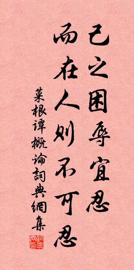 道是一件公眾的物事,當隨人而接引;學是一個尋常的家飯,當隨事而警惕。念頭寬厚的,如春風煦育,萬物遭之而生;念頭忌克的,如朔雪陰凝,萬物遭之而死。勤者敏於德義,而世人借勤以濟其貪;儉者淡於貨利,而世人假儉以飾其吝。君子持身之符,反為小人營私之具矣,惜哉!人之過誤宜恕,而在己則不可恕;己之困辱宜忍,而在人則不可忍。恩宜自淡而濃,先濃後淡者人忘其惠;威宜自嚴而寬,先寬後嚴者人怨其酷。士君子處權門要路,操履要嚴明,心氣要和易。毋少隨而近腥膻之黨,亦毋過激而犯蜂蠆之毒。遇欺詐的人,以誠心感動之;遇暴戾的人,以和氣熏蒸之;遇傾邪私曲的人,以名義氣節激勵之。天下無不入我陶熔中矣。