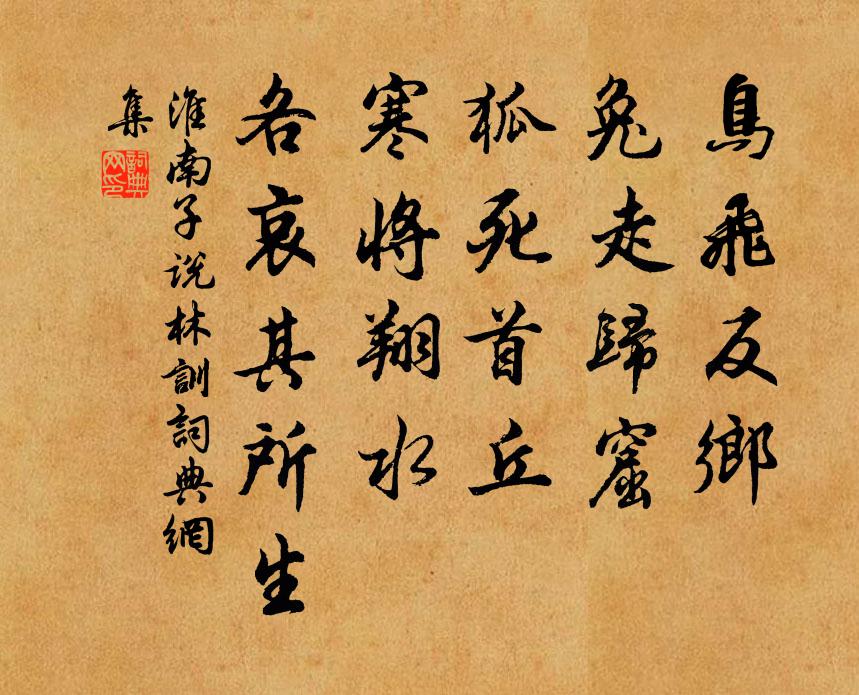 解釋:鳥兒飛翔再遠再高,也總得返回鳥巢;兔子跑得再快再遠,也總得返回洞穴;狐狸死時,頭總朝著巢穴;寒蟬貼水而飛,它們各自依戀著自己生存的環境。