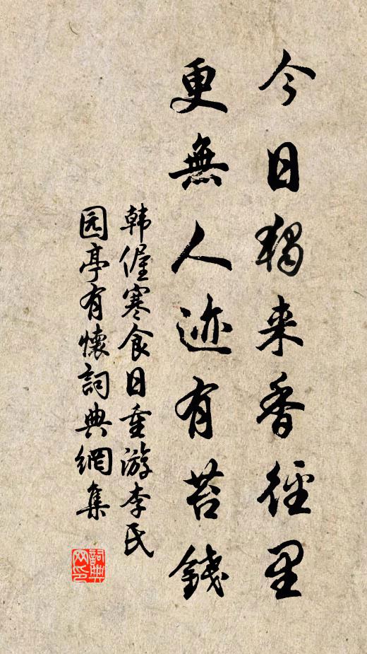 今日獨來香徑里,更無人跡有苔錢。
