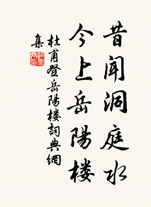 古詩文歷史字典書法欣賞書法字典國語詞典說文解字康熙字典古漢語字典昔聞洞庭水,今上岳陽樓杜甫 《登岳陽樓》名句出處出自唐朝杜甫的《登岳陽樓》原文賞析:昔聞洞庭水,今上岳陽樓。吳楚東南坼,乾坤日夜浮。親朋無一字,老病有孤舟。戎馬關山北,憑軒涕泗流。杜甫詩詞大全名句書法欣賞昔聞洞庭水,今上岳陽樓書法作品杜甫名句,登岳陽樓名句名句推薦五月五日午,贈我一枝艾。文天祥《端午即事》何期今日酒,忽對故園花。文森《九日》孝有三:大孝尊親,其次弗辱,其下能養。戴聖《禮記·祭義》梧桐葉上三更雨,葉葉聲聲是別離。周紫芝《鷓鴣天·一點殘紅欲盡時》因其材以取之,審其能以任之,用其所長,掩其所短吳兢《貞觀政要·卷三·論擇官》花開紅樹亂鶯啼,草長平湖白鷺飛。徐元傑《湖上》立盡黃昏淚幾行,一片鴉啼月。夏完淳《卜運算元·秋色到空閨》芳菲歇去何須恨,夏木陰陰正可人。秦觀《三月晦日偶題》夜戰桑乾北,秦兵半不歸。許渾《塞下曲》天涯海角悲涼地,記得當年全盛時。趙鼎《鷓鴣天·建康上元作》多情卻被無情惱。蘇軾《蝶戀花·春景》君子之學也,入乎耳,著乎心荀子《荀子·勸學》江山如有待,花柳自無私。杜甫《後游》別有世間曾未見,一行一步一花新。吳承恩《西遊記·第三十八回》玉爐香,紅蠟淚,偏照畫堂秋思。溫庭筠《更漏子·玉爐香》詩詞推薦采芡梅堯臣〔宋代〕蝟毛蒼蒼磔不死,銅盤矗矗釘頭生。吳雞鬥敗絳幘碎,海蚌抉出真珠明。磨沙漉水莩殼滑,斫桂煮釜風波聲。齒如殘句:香絮亂飄梁苑雪王禹偁〔宋代〕香絮亂飄梁苑雪,細秫輕裊楚宮腰。節日新晴歸自天慶楊萬里〔宋代〕初日明鴈腹,酸風迎馬頭。如何一雨過,添卻滿城秋。樓觀色俱喜,槐榆影獨愁。節中公事少,吏散得吾休。入朝洛堤步月上官儀〔唐代〕脈脈廣川流,驅馬歷長洲。鵲飛山月曙,蟬噪野風秋。 題城南書院三十四詠張栻〔宋代〕烏雲夭矯風作惡,雷奔電掣雨懸河。須臾天宇復清霽,突兀西山紫翠多。下第游金明池鄭獬〔宋代〕騎殺青都白玉麟,歸來狂醉後池春。人間得喪尋常事,不避郎君走馬塵。寄平甫弟衢州道中王安石〔宋代〕淺溪受日光炯碎,野林參天陰翳長。幽鳥不見但聞語,小梅欲空猶有香。長年無可自娛戲,遠遊雖好更悲傷。安得吊草堂禪師劉得仁〔唐代〕杖履疑師在,房關四壁蛩。貯瓶經臘水,響塔隔山鍾。乳鴿沿苔井,齋猿散雪峰。如何不相見,倚遍寺前松。寒食張耒〔宋代〕風雲雖不定,日雨亦易乾。殘春猶凜凜,助我朝食寒。想見芳野田,士女游班班。去者日以疏,更為來者歡。青紅題致爽亭陳宓〔宋代〕山水圍中宅一區,小亭花柳足康娛。勾牽詩思千篇有,斗擻征塵一點無。秉燭風檐費遮邏,閉窗雲霧巧闚{外門內