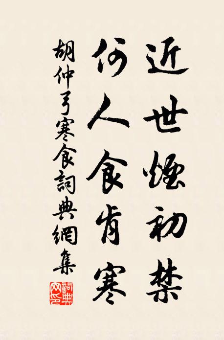 古詩文歷史字典書法欣賞書法字典國語詞典說文解字康熙字典古漢語字典近世煙初禁,何人食肯寒胡仲弓 《寒食》名句出處出自宋代胡仲弓的《寒食》全文:初過一百五,園林正好看。梨花未全禿,梅子可帶酸。近世煙初禁,何人食肯寒。東風猶作惡,誰念客衣單。名句書法欣賞近世煙初禁,何人食肯寒書法作品胡仲弓名句,寒食名句名句推薦將他建立,認作心誠,也是尋香王安石《訴衷情(又和秀老·五之五)》擁爐收案牘,市遠隔諠嘩張至龍《李梅磵雪夜留飲》士患聲名早,官今歲月催陳師道《送孝忠二首》然則有犯無隱,挺焉直躬岳珂《鄂忠武王書簡帖贊》他時杯酒論暌闊,應有微言激懦衷胡寅《送黎才翁往荊門》百千年樹見栽時,新承雨露入昭代丘葵《次韻吳靜能秦檜》臨川攝守得仁侯,閔兩精誠貫顯幽許月卿《臨川》秋空仰瞻鴻鵠舉,政恐是中有新句釋善珍《送傅左司赴袁州》杯中疇昔共江天,傾座新詩報警聯范成大《次韻嚴子文旅中見贈》采戰神丹散失,服還元、水火不當馬鈺《滿庭芳 贈汝車趙三仙》高蹈欣系解,括囊聞飲醇劉子翬《吊史》去國夏雲斷,還鄉秋雁飛宋之問《送李侍御》學道無成天不慳尹志平《一剪梅 述懷贈程老先生》列翠不可唾,群籟無敢嘩洪咨夔《小雪前三日鍾冠之約余侍老人行山舟發後洪入》傳書燕足徒虛語,強學山公醉舉鞭洪皓《思歸》詩詞推薦送蕭監丞浚宰臨邑梅堯臣〔宋代〕羨君先拜邑,殘臘見登車。遠驛寒雲重,長郊積雪余。行當勤民稼,始信帶經鋤。還到濟南日,應傳古尚書。和王勝之雪霽借馬入省王安石〔宋代〕泥水填馬不受轍,瓦雪得火猶藏溝。宿霧紛紛度城闕,朔氣凜凜吹衣裘。窮閻閉門無一客,剝啄驚我有前騶。強隨高宗郊祀前廟朝享太廟三十首真宗〔宋代〕天命有開,維仁是依。迺睠冀邦,於以顧之。其顧伊何,發祥筆基。施於孫子,虔奉孝思。戲答張商老賀鑄〔宋代〕揚子江頭兩信潮,送君西去木蘭橈。依依暮雨鴛鴦夢,嫋嫋春風豆蔻梢。細字碧箋隨雁到,小簾朱戶抵天遙。長安題開元寺水閣趙嘏〔唐代〕年來獨向此游頻,謝氏青山與寺鄰。朱檻夜飛溪路雪,碧林晴隔馬蹄塵。波穿十里橋連寺,絮壓千家柳送春。客中周文璞〔宋代〕客中時序又匆匆,孤坐初春小雨中。弄水攀松去年事,令人憶殺洞霄宮。寄賈馳先輩曹鄴〔唐代〕遊子想萬里,何必登高台。聞君燕女吟,如自薊北來。長安高蓋多,健馬東西街。盡說蒿簪古,將錢買金釵。我祖苦熱行王禹偁〔宋代〕六龍銜火燒寰宇,魏王冰井如湯煮。松枝桂葉凝若痴,喘殺溪頭嘯風虎。北溟熔卻萬丈冰,千斤凍鼠忙如蒸。我聞題吳郡王家雙竹曹勛〔宋代〕環碧亭前碧玉枝,森森連璧揖多姿。節涵宿雨蒼龍並,梢舞晴雲翠鳳差。架雪凌霜俱有志,懷仁抱義本同時。戚垣水村陸游〔宋代〕家住煙波似畫圖,殘年不復嘆頭顱。深深竹塢見螢度,翳翳菰叢聞鳥呼。十里笳聲上雲漢,一空星影落陂湖。天公