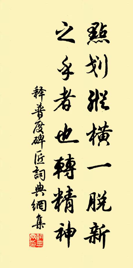 古詩文歷史字典書法欣賞書法字典國語詞典說文解字康熙字典古漢語字典點劃縱橫一脫新,之乎者也轉精神釋普度 《碑匠》名句出處出自宋代釋普度的《碑匠》全文:點劃縱橫一脫新,之乎者也轉精神。只於黑白分明處,驗尺尋行數墨人。釋普度詩詞大全名句書法欣賞點劃縱橫一脫新,之乎者也轉精神書法作品釋普度名句,碑匠名句名句推薦感事傷春多少意,星星漸入鬢中來尹洙《和河東施待制二首》其一最先達,進為國大臣吳芾《聞同庚不幸有感》用舍如公都耐毛滂《清平樂》白雲之下,通化之鄉黃公槐《北堂》瀑雨霏霏濕翠嵐,來從天半許誰探喻良能《題五泄瀑布四首》且安懷抱莫惆悵,瑤瑟調高尊酒深羅鄴《落第書懷寄友人》回思燈火書窗下,僂指如今六十年董居誼《戚姑山》苦霧霏霏著彩旗,猶排吉仗雜凶儀歐陽修《續作永昭陵輓詞五首》午後喧傳曰:“今年暗漲潮張岱《白洋潮》禮樂新封魯趙善括《菩薩蠻(上嗣王生日)》地厭焚惔極,天回顧盼中黃庭堅《次韻曾都曹喜雨》閒眠與閒防,暇字匪二義方回《寄題朱信州自閒堂》月明半夜五更時謝應芳《一翦梅》咿嘔似欲指之無,燁燁眼光如點漆陳著《丙戌二月廿五日梅山弟為孫試周遂賦》千年百尺鳳凰台,送盡潮回鳳不回楊萬里《登鳳凰台》詩詞推薦滁上間日陰晴聯句刁繹〔宋代〕陰晴淮海氣何殊,一昔風光互慘舒。大塊養春裨造化,繁雲間日蔽居諸。暖回沙磧催來雁,寒徹冰池怯上魚。山色頌古九首釋思岳〔宋代〕無根樹子一株,山翁不費誅鋤。鎚碎千年桃核,不須緣木求魚。句釋曉瑩〔宋代〕回看蒼木杪。卜運算元陳瓘〔宋代〕身如一葉舟,萬事潮頭起。水長船高一任伊,來往洪濤里。潮落又潮生,今古長如此。後夜開尊獨酌時,月滿人千書徐經坂先志陳杰〔宋代〕青霞余絢皆成章,虎變龍匿超故常。異時欣然讀奇崛,觸眼慘澹令人傷。矢心為詞血為筆,沈恨欲拆天茫茫。波瀾適意王安石〔宋代〕一燈相伴十餘年,舊事陳言知幾編。到了不如無累後,困來顛倒枕書眠。游清都觀尋沈道士得清字許敬宗〔唐代〕幽人蹈箕潁,方士訪蓬瀛。豈若逢真氣,齊契體無名。既詮眾妙理,聊暢遠遊情。縱心馳貝闕,怡神想玉京。或命入城似吳竹溪陳著〔宋代〕投眠方丈室,為趁午潮差。父執子愛我,客身心是家。夜床安紙帳,曉枕夢梅花。早作臨溪別,此情天共涯。次韻山中見寄林景熙〔宋代〕物外高棲豈好奇,愛涼坐到雨來時。四愁歲月空平子,三樂乾坤自啟期。晉代諸賢曲水會,鎬京遺澤變風詩。世交十暑朱繼芳〔宋代〕十暑江湖客,塵緇白苧衫。人沿沙島路,風卷海門帆。帶雨廚煙重,通潮井脈鹹。家書言不盡,重拆又重緘。