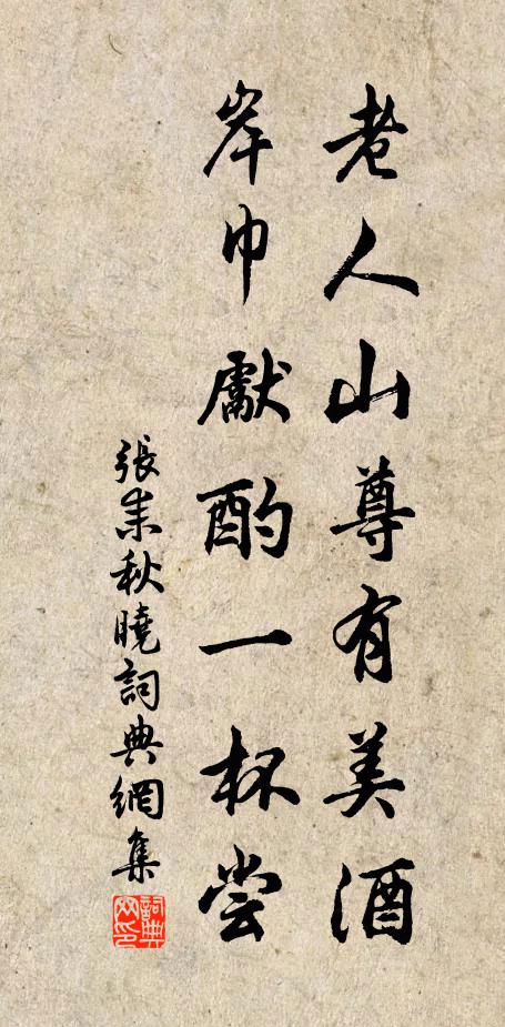 老人山尊有美酒,岸巾先酌一杯嘗。