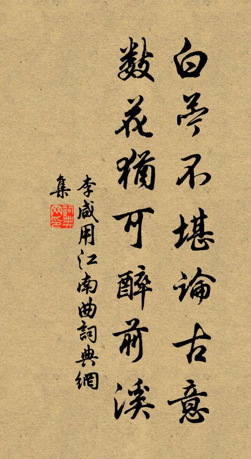 杜甫〔唐代〕蕭史幽棲地,林間蹋鳳毛。洑流何處入,亂石閉門高。客醉揮金碗,詩成得繡袍。清秋多宴會,終日困香醪。