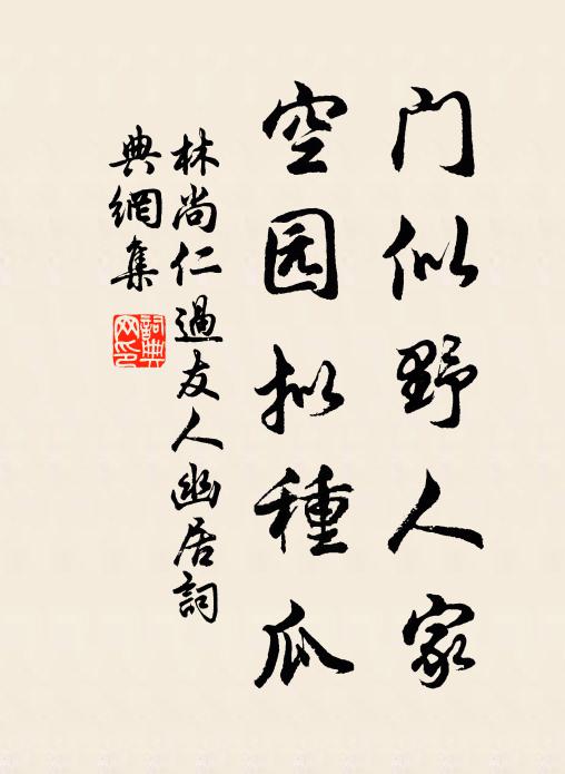 古詩文歷史字典書法欣賞書法字典國語詞典說文解字康熙字典古漢語字典門似野人家,空園擬種瓜林尚仁 《過友人幽居》名句出處出自宋代林尚仁的《過友人幽居》全文:門似野人家,空園擬種瓜。有僧分石坐,無酒問鄰賒。獨鶴喜欲舞,老梅寒自花。此身歸未去,猶愧暮林鴉。林尚仁詩詞大全名句書法欣賞門似野人家,空園擬種瓜書法作品林尚仁名句,過友人幽居名句名句推薦落磑快先啜,鼓復欣策功張栻《寒食前三日野步烏龍山中石上往往多新芽手擷》酒亦有何好,上策當自治仇遠《戒飲》神仙說,功名事,兩難成李彌遜《水調歌頭(橫山閣對月)》同是瀛洲冊府仙,今朝聊結社中蓮,胡笳按拍酒如川張孝祥《浣溪沙·中秋坐上十八客》胸中千萬慮,對此一清曠權德輿《晚渡揚子江卻寄江南親故》目窮莽蒼織毫盡,身得逍遙萬象閒司馬光《和邵堯夫霽登石閣》從此便膺君命重,亦須昭穆葬江南王遂《題順寧窗》清福人間少,紅塵山外深周暕《寄悅上人》暫別已作惡,況乃三歲暌袁燮《送樓叔韶尉東陽三首》天予環奇資賦詠,況當時思似流泉陳宓《次劉制乾潛夫趣續譜韻》劉裴建首義,龍見尚躊躇杜甫《別張十三建封》幽蘭盈通谷陸機《悲哉行》見說道花枝,也成消瘦何夢桂《喜遷鶯》台家搜遍北山萊,傾國如君不用媒楊萬里《和張器先十絕》千年月照秋草上,吳王在時幾回望皎然《姑蘇行》詩詞推薦司馬遷墓牟融〔唐代〕落落長才負不羈,中原回首益堪悲。英雄此日誰能薦,聲價當時眾所推。一代高風留異國,百年遺蹟剩殘碑。經過次韻和長文禖祀郊外見寄並呈韓子華梅堯臣〔宋代〕鵓鴣知雨在桑中,雄逐雌飛自不同。胡粉未生輕蝶白,燕脂先綻野櫻紅。高高樹里鞦韆月,獵獵牆頭蓓蕾風。曉下謝錢穆父惠高麗扇張耒〔宋代〕三韓使者文章公,東夷守臣親掃宮。清嚴不受橐中獻,萬里歸來兩松扇,六月長安汗如洗,豈意落我懷袖裡。中州和武公望雪梅五首廖行之〔宋代〕雪裡最憐梅破萼,花時那負歲寒心。不因王子聊乘興,爭得林逋為賞音。玩月金陵城西孫楚酒樓達曙歌吹日晚乘醉…訪崔四侍御李白〔唐代〕昨玩西城月,青天垂玉鉤。朝沽金陵酒,歌吹孫楚樓。忽憶繡衣人,乘船往石頭。草裹烏紗巾,倒被紫綺裘。兩岸邵武山人楊壽卿臨別索詩王邁〔宋代〕楚峰之下有地仙,只手把握山水權。青烏白鶴去不返,此郎高舉拍其肩。年來海內稱絕介,眸子瞭然通意匠。巧尋歸將吟施肩吾〔唐代〕百戰放歸成老翁,餘生得出死人中。今朝授敕三回舞,兩賜青娥又拜公。水調歌頭張孝祥〔宋代〕今夕復何夕,此地過中秋。賞心亭上喚客,追憶去年游。千里江山如畫,萬井笙歌不夜,扶路看遨頭。玉界擁銀闋柏溪岩頭陳著〔宋代〕晴色上游筇,西行二里中。薺花黃纈地,麥穗白潮風。紙杵鳴山屋,齋鍾出梵宮。歸途須傍早,要折石岩紅。卻入泗口李紳〔唐代〕洪河一派清淮接,堤草蘆花萬里秋。煙樹寂寥分楚澤,海雲明滅滿揚州。望深江漢連天遠,思起鄉閭滿眼愁。惆悵