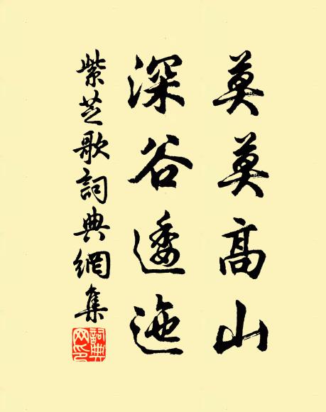 古詩文歷史字典書法欣賞書法字典國語詞典說文解字康熙字典古漢語字典莫莫高山,深谷逶迤佚名 《紫芝歌》名句出處出自先秦佚名的《紫芝歌》原文賞析:莫莫高山。深谷逶迤。曄曄紫芝。可以療飢。唐虞世遠。吾將何歸。駟馬高蓋。其憂甚大。富貴之畏人兮。貧賤之肆志。佚名詩詞大全名句書法欣賞莫莫高山,深谷逶迤書法作品佚名名句,紫芝歌名句名句推薦枕上十年事,江南二老憂,都到心頭。徐再思《水仙子·夜雨》野火燒不盡,春風吹又生。白居易《草 / 賦得古原草送別》秋風起兮白雲飛,草木黃落兮雁南歸。劉徹《秋風辭》行有不得者,皆反求諸己,其身正而天下歸之。孟子《孟子·離婁章句上·第四節》凌晨過驪山,御榻在嵽嵲杜甫《自京赴奉先縣詠懷五百字》小溪清水平如鏡,一葉飛來浪細生。徐璣《秋行》玄都觀里桃千樹,儘是劉郎去後栽。劉禹錫《元和十年自朗州至京戲贈看花諸君子 / 玄都觀桃花》目不能兩視而明,耳不能兩聽而聰。荀子《荀子·勸學》兵之利鈍是常事,貴因敗以為成耳。佚名《百戰奇略·第六卷·敗戰》越梅半拆輕寒里,冰清淡薄籠藍水。和凝《菩薩蠻·越梅半拆輕寒里》不求同日生,只願同日死。施耐庵《水滸傳·第二回》零落江南不自由。兩綢繆。料得吟鸞夜夜愁。姜夔《憶王孫·番陽彭氏小樓作》昔在零陵厭,神器若無依。何遜《行經孫氏陵》喃喃教言語,一一刷毛衣。白居易《燕詩示劉叟》飛雪帶春風,裴回亂繞空。劉方平《春雪》詩詞推薦浣溪沙(竹洲七夕)吳儆〔宋代〕秋到郊原日夜涼。黍禾高下已垂黃。荷花猶有晚來香。天上佳期稱七夕,人間好景是秋光。竹洲有月可徜徉。贈河陽李大夫(李芃,河陽節度使)韓愈〔唐代〕四海失巢穴,兩都困塵埃。感恩由未報,惆悵空一來。裘破氣不暖,馬羸鳴且哀。主人情更重,空使劍鋒摧。送趙一叔江西漕赴召代成父作二首趙蕃〔宋代〕阿兄今得太和官,買舟同載初不難。公持使節豫章郡,蘄以過公道窘寒。公今召節趨日邊,我雖失望猶欣然。西江讀友人詩杜荀鶴〔唐代〕君詩通大雅,吟覺古風生。外卻浮華景,中含教化情。名應高日月,道可潤公卿。莫以孤寒恥,孤寒達更榮。苦雨中又作四聲詩寄魯望平聲皮日休〔唐代〕涔涔將經旬,昏昏空迷天。鸕鶿成群嬉,芙蓉相偎眠。魚通蓑衣城,帆過菱花田。秋收吾無望,悲之真徒然。偈頌一百五十首釋心月〔宋代〕一非一,二非二。仰面不見天,低頭不見地。一即一,二即二。仰面見青天,低頭亦見地。山房陸游〔宋代〕四紀移家剡曲傍,自茨生草作山房。寒侵夜艾知霜重,行遍天涯覺夢長。戒婢無勞事釵澤,課奴相率補陂塘。無衣無題七絕一首蘇軾〔宋代〕春風寂寂夜寥寥,一望蒼苔雪影遙。何處幽香飛幾片,只宜月色帶花飄。最高樓劉辰翁〔宋代〕銀河水,洗得世間清。山色雨餘青。老子綸巾棋別墅,人家鼾睡柝秋城。定誰勞,定誰福,定誰能。常恨著、景升楊秘校秋懷宋祁〔宋代〕涼風颯彫年,遙昔耿多慮。冽冽寒螿鳴,離離客鴻度。之子懷茂器,有志康庶務。未蒙徐樂召,方感董生遇。道局