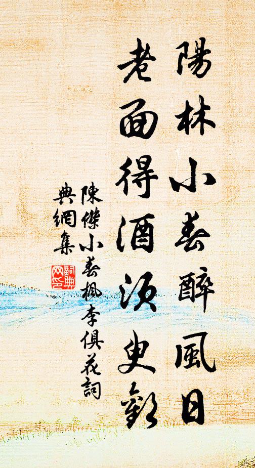 古詩文歷史字典書法欣賞書法字典國語詞典說文解字康熙字典古漢語字典陽林小春醉風日,老面得酒須臾歡陳杰 《小春楓李俱花》名句出處出自宋代陳杰的《小春楓李俱花》全文:陽林小春醉風日,老面得酒須臾歡。不妨桃李妍冬谷,正要松篁用歲寒。陳杰詩詞大全名句書法欣賞陽林小春醉風日,老面得酒須臾歡書法作品陳杰名句,小春楓李俱花名句名句推薦夜色帶春煙,燈花拂更燃劉長卿《揚州雨中張十宅觀妓(一作張謂詩)》孤形侶雲漢,涼思滿山樓周嵩《山樓秋夜》贊條初罷浙江回,辟命還從蜀道來蘇頌《送朱屯田赴辟成都》曾記走馬長安,功名戲樊郭李義山《祝英台近(壽張路鈐·四月初)》支遁才高交杜老,參寥詩好動蘇仙黃庚《寄錢竹深》遠樹半遮乾木廟,斷雲猶鎖魏侯城袁藏雲《魏侯故城》第三松樹非華表,那得遼東鶴下來白居易《吳七郎中山人,待制班中,偶贈絕句》征旆空自持陳子昂《征東至淇門答宋十一參軍之問》旨酒思柔,神具醉止真宗《孝宗明堂前朝獻景靈宮八首》聖人復起,必從吾言矣孟子《敢問夫子惡乎長》挾冊濫書府,振纓玷王官宋庠《已巳歲除夜有感》上通帝座二氣之呼吸,下沖龍門百折之崑崙源楊維楨《華山高》潭府邑中甚淳古,還如何遜在揚州黃庭堅《戲贈張叔甫》報落梧桐猶隕葉,知時蟋蟀解親床張耒《夜》何時拂袖得歸去,春風笑滿南陔蘭鄭獬《感懷》詩詞推薦郊廟歌辭。太清宮樂章。序入破第一奏佚名〔唐代〕真宗開妙理,沖教統清虛。化演無為日,言昭有象初。瑤台肅靈瑞,金闕映仙居。一奏三清樂,長回八景輿。過曾季永見壁間張安國所書天下第一真仙之岩趙蕃〔宋代〕見井渴已止,投林心更欣。行方觸炎熱,坐覺遠塵紛。誰滿鵷鷺集,子猶麋鹿群。融州在何處,壁字帶岩雲。送趙夷仲南歸陳造〔宋代〕離索老不堪,應接意多遻。愛者挽不留,惡者推不去。道人心如水,胡復生愛惡。方厭塵眯眼,倏驚瓊為樹。趙侯摸魚兒(過東平有感)汪夢斗〔宋代〕憶舊時、東方□郡,東原儘是佳處。梁都破了尋南渡,幾遍狐號鱔舞。君試覷。環一抹荒城,草色今如許。芳華舊寄江陵王少府方乾〔唐代〕分手頻曾變寒暑,迢迢遠意各何如。波濤一阻兩鄉夢,歲月無過雙鯉魚。吟處落花藏筆硯,睡時斜雨濕圖書。此來武陵春佚名〔宋代〕七返還丹人怎曉,曉後有何難。夜靜存神向內觀。神水滿泥丸。搬運金精無夜晝,呼吸不會閒。功行成時出世寰。和趙提刑韻送呂堂長主簿姚勉〔宋代〕道在顏瓢欒不憂,清風端可繼前修。朅將西澗重新了,莫是東萊再出不。學校諸生俱向仰,文章太守共賡酬。戍瓜自西懸趨南鄭道中雜詠三首李新〔宋代〕茂林修竹平夷地,牧馬藏兵戰鬥場。死節不知師李固,溺冠惟解法高皇。和陶命子韻示津調官吳芾〔宋代〕又豈不知,道否晚周。天縱將聖,獨有孔丘。卒老於行,靡憚周流。胡為潔己,恥事王侯。偶成長句方士繇〔宋代〕北風日日閉柴門,落盡梅花雨暗村。虛閣留春宜夜永,寒爐撥火借春恩。舂知身外親交少,老覺人間歲月奔。空負
