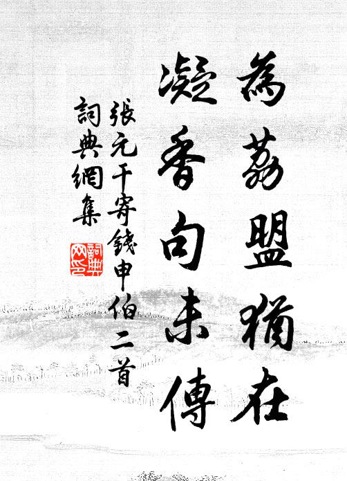 古詩文歷史字典書法欣賞書法字典國語詞典說文解字康熙字典古漢語字典為荔盟猶在,凝香句未傳張元乾 《寄錢申伯二首》名句出處出自宋代張元乾的《寄錢申伯二首》全文:一點照今古,胸中殊瞭然。不妨為漫吏,可但號臞仙。為荔盟猶在,凝香句未傳。秋風稍涼冷,速辦下灘船。張元乾詩詞大全名句書法欣賞為荔盟猶在,凝香句未傳書法作品張元乾名句,寄錢申伯二首名句名句推薦我初聞招便勇往,恨不插翼附駿駒強至《寒食安厚卿具酒饌邀數君子游壓沙寺觀梨花獨》師承自得春秋學,經行俱高月旦評廖行之《送樂貢父赴書館》詩傳百越徧,詔下九霄遲楊億《送溫州聶從事赴闕》顧豈不知金幣饒,家有清風誓不頗晁說之《送杜通直乞罷無極南歸》園家逢秋蔬,藜藿不滿眼李白《玉真公主別館苦雨贈衛尉張卿二首》棄忠貞於鄭國,忘信義於吾家李淵《嘲蘇世長》天將少訥愈我病,次第為取蹊茅拔文同《奉送少訥還青神》郎罷才名今日發,佐州亦復坐窮邊姜夔《寄俞子》君不見狄青宣撫荊湖間,上元張樂宴清班方鳳《上元陳丞相宅觀燈有作》會心不憚遠,乘興恐失便范成大《與吳興薛士隆使君游弁山石林先生故居》相期醉酴醾,偕來從無鞅王之道《追和元微之春餘遺興示王覺民》一窺長安城沈約《奉和竟陵王郡縣名詩》養心澹泊千詩稿,種德蕃滋九畹蘭葉茵《壽水竹弟》冒寒糝糝已蘊玉,自開及謝酒屢持曹勛《梅》茅店不容客,柳堤聊枕舷姚勉《舟泊蘭溪湖頭市遇雨》詩詞推薦題浯溪趙某〔宋代〕元頌顏書□□□,好風吹我過三吾。倚空□□煙雲□,□古興亡草木枯。讀盡□□留□□,□□□□較錙銖。西江月石孝友〔宋代〕歌徹秋娘金縷,醉扳織女雲車。而今誰復薦相如。拔劍茫然四顧。好景憑詩斷送,閒愁著酒消除。鏡中絲髮莫驚呼奢侈吟邵雍〔宋代〕侈不可極,奢不可窮。極則有禍,窮則有凶。村居 其四王冕〔元代〕局厭廛中隱,寬從野外居。人情方密熟,禮數覺生疏。懸榼空浮蟻,陳編撲蠹魚。客來縱談笑,不必問吾廬。王提舉合政錢夫人輓詩趙善括〔宋代〕山敞神仙宅,人辭富貴家。靚容深莫識,清節瑩無瑕。蚌脫珠方璨,桂靈桂始華。他年容萬馬,今日送千車。秋盡吟邵雍〔宋代〕數日之間秋遂盡,百思無以慰蹉跎。園林正好愛不徹,草木已黃情奈何。雖老筋骸行尚健,盡高台榭望仍多。終朝清平樂孫光憲〔唐代〕愁腸欲斷,正是青春半。連理分枝鸞失伴,又是一場離散掩鏡無語眉低,思隨芳草淒淒。憑仗東風吹夢,與郎終日送程德孺赴江西張耒〔宋代〕程侯治楚我獨知,去時民作嬰兒啼。歸來明光見天子,還把一節來江西。年來屢下寬大詔,赤子未免寒與飢。恩如句晏殊〔宋代〕臘雪半含梅粉白,春風先著柳梢黃。姑孰十詠。靈墟山李白〔唐代〕丁令辭世人,拂衣向仙路。伏煉九丹成,方隨五雲去。松蘿蔽幽洞,桃杏深隱處。不知曾化鶴,遼海歸幾度。
