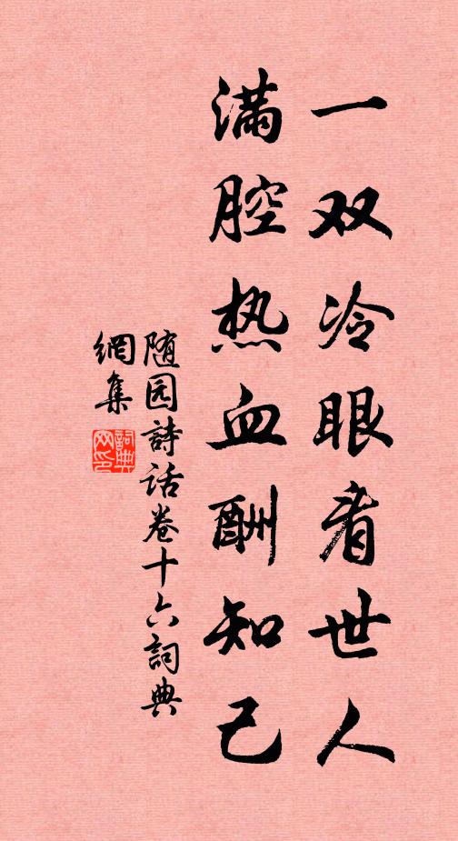 解釋:一雙冷眼看世上的一切是非;可是滿腔熱血豪情,卻隨時準備用來報答知己的知遇恩情。