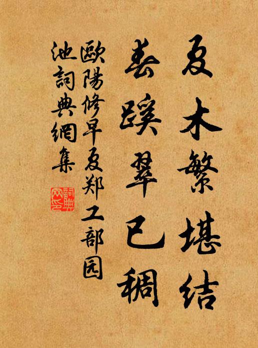 古詩文歷史字典書法欣賞國語詞典查字典說文解字康熙字典古漢語字典夏木繁堪結,春蹊翠已稠歐陽修 《早夏鄭工部園池》名句出處出自宋代歐陽修的《早夏鄭工部園池》全文:夜雨殘芳盡,朝暉宿霧收。蘭香才馥徑,柳暗欲翻溝。夏木繁堪結,春蹊翠已稠。披襟楚風快,伏檻更臨流。歐陽修詩詞大全名句書法欣賞夏木繁堪結,春蹊翠已稠書法作品歐陽修名句,早夏鄭工部園池名句名句推薦我若等閒開坐具,阿師無地著渾身釋月澗《禮思大禪師塔(福嚴)》逆旅重陽節,窮秋萬里身楊億《重陽日憶遠》青山已半虧沈約《詠余雪詩》寒月空相照,何人夜扣扉薛嵎《素上人遊方》雖雲違佛戒,初匪墮俗情滕岑《和陶淵明飲酒詩》席分珠履三千客,後列金釵十二行佚名《題太和樓壁》綺羅回錦陌,弦管入花江柳中庸《春思贈人》素頸圓吭鶯燕語毛滂《蝶戀花》後夜相思,塵隨馬去,月逐舟行。劉過《柳梢青·送盧梅坡》佯問候熱剌剌念合賈仲名《倘秀才》何尚友、滄波鷗鷺張榘《賀新涼(次拙逸劉直孺維揚客中賀新涼韻)》詩豪會見揮銀筆,酒聖端能倒玉山陳棣《次韻葉秀實縣治環翠亭》橫拖長袖招人別,只待春風卻舞來司空圖《白菊三首》樂居泰定山,豈減獨樂園晁公溯《喜邵孟清風過》吾君甚愛民,恩德侔圖幬五邁《寄陳士登元龍士登書問盜且責予不貽書當路為》詩詞推薦自萬泉莊堤上至聖化寺溪堂即景雜詠·其三乾隆〔清代〕曾無十里到招提,月宇風幡枕碧溪。更有溪南池館在,橫楣幾處仰軒題。宥老楮蘇軾〔宋代〕我牆面東北隅,面張王維老面谷。樹先樗櫟大,葉等桑柘沃。流膏馬乳漲,墮子面熟。胡為尋丈地,養此不材木。賡曾省齋舊題鳳翔空壁何夢桂〔宋代〕滄溟陵陸起黃埃,薦福碑驚半夜雷。玄鶴歸遲生墓草,白鷗飛盡上磯苔。寒泉辱井留脂水,黑土夷陵出燼灰。往事鄭北山之元孫扁其樓王適莊為書北山之英四字金履祥〔宋代〕相維權奸,公以才忌。瀕死荒陲,非公所悸。山中雜言吳錫疇〔宋代〕得失升沈是與非,紛紛世上局如棋。白雲谷口橫遮斷,萬事山中總不知。廣安雍某〔宋代〕欲說賓城好,先夸方物妍。金羹收稻後,紅臘落梅前。照座梨偏紫,堆盤荔更鮮。清州如斗大,盛事數從前。崖日次韻東坡蒲澗寺二首白玉蟾〔宋代〕陳蹤行覽寺門前,自取椰瓢酌冷泉。山下果然無白地,洞中儘自有青天。更誰識得安期事,且去參他景泰禪。冠蓋慎縣修路者王安石〔宋代〕畚築今三歲,康莊始一修。何言野人意,能助令君憂。肋力非無補,論心豈有求。十年空志食,因汝起予羞。送堅大師往雲蓋兼簡隆老陶夢桂〔宋代〕梅月廉纖雨,麥秋清潤天。幾程雲蓋路,一葉石山船。瓦礫猶能說,葫蘆自去纏。到時應問我,為道只高眠。清溪遠流疊去歲韻乾隆〔清代〕澍雨作溪源,清流景綴園。輿來冒霢霂,窗俯閱潺湲。觀察興同勃,詠吟性與存。句成旋言返,林下露珠繁。