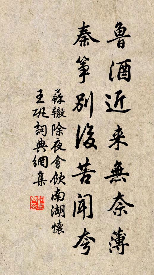 魯酒近來無奈薄,秦箏別後苦聞夸。