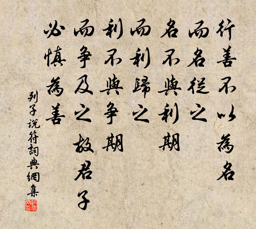 行善不以為名,而名從之;名不與利期,而利歸之;利不與爭期,而爭及之:故君子必慎為善。