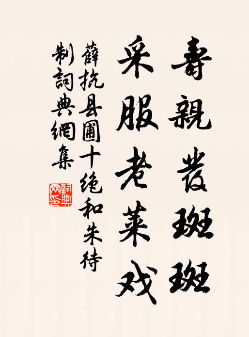 古詩文歷史字典書法欣賞書法字典國語詞典說文解字康熙字典古漢語字典壽親發斑斑,采服老萊戲薛抗 《縣圃十絕和朱待制》名句出處出自宋代薛抗的《縣圃十絕和朱待制》全文:壽親發斑斑,采服老萊戲。欲賦招隱詩,小山念松桂。薛抗詩詞大全名句書法欣賞壽親發斑斑,采服老萊戲書法作品薛抗名句,縣圃十絕和朱待制名句名句推薦嗟嗟二千石,不知子所向梅堯臣《次韻答德化尉郭功甫遂以送之》劉侯同襟期,賡唱揮彩椽樂雷發《次韻李監丞同劉玉淵游七泉》畢竟蒭蕘何所補,不如留著在山林項安世《立春日離愛聞有召試之命》風來觸香氣,長著人衣裾謝絳《答梅聖俞問隱》半月不把鏡,羞看兩鬢塵戴復古《都下書懷》鴻雁響寒郊蘇庠《訴衷情》馮宿卬歲時,隨父廬祖墳樂史《慈竹》一相從後便相知,結得因緣似許奇陳著《壽法椿長老二首》一畫未為病,錯出已什伯何夢桂《贈術士邵易庵》山僧撲破琉璃缽,壯士擊折珊瑚鞭佚名《琵琶》清風明月不用買,何處不是安樂窩文天祥《陳貫道摘坡詩如寄以自號達者之流也為賦浩浩》枯石流痕,殘沙擁沫,驪宮夜蟄驚起馮應瑞《天香(宛委山房擬賦龍涎香)》清夜一孤燈,不疚內自燭方回《題祝公輔靜得齋》前人開創願力廣,下與舟楫扶傾危何耕《題龍華佛閣》促促送歸客,短亭垂柳風文同《送郭經知縣》詩詞推薦春暮游小園王淇〔宋代〕一從梅粉褪殘妝,塗抹新紅上海棠。開到荼縻花事了,絲絲夭棘出莓牆。滿庭芳方岳〔宋代〕星昴呈祥,山川鍾秀,果然生此真賢。精神瑩澈,秋水共長天。況值西風初起,中元過、七日涼先。庭院爽,稱觴書陳副省卷張舜民〔宋代〕乃翁能繼輞川吟,零落傳家得至今。貧賤莫量陳孺子,與人千古作知音。駕部郎中畢公輓辭二首蘇頌〔宋代〕世德公高裔,家聲相國孫。飾儒成吏事,訓子服忠言。道直躬難進,流長慶有源。椎牛方返葬,納駟已高門。言志釋文珦〔宋代〕窮居雖寂寥,苦節諒難改。青青山上薇,朝莫猶可采。薇盡而長飢,餓死亦無悔。古者夷與齊,清風彌億載。贈山屋相士方逢振〔宋代〕圓顱方趾具仁端,性體曲來只一般。若見裡頭腔子黑,相書已作死人看。挽洛陽李教授喪北歸陳杰〔宋代〕華閥晃科峻,寒氈洛學開。燕子庭五桂,晉國手三槐。風幕南烹養,塗車北首哀。讀書終不憾,九秩過江來。東天目施樞〔宋代〕不辭巘險訪龍潭,潭底無窮碧似藍。亂石鳴灘溪過九,飛泉瀉瀑塹分三。雖然道士能相引,不比樵人得盡諳。怊悵重和元少尹白居易〔唐代〕鳳閣舍人京亞尹,白頭俱未著緋衫。南宮起請無訊息,朝散何時得入銜?南鄉子陳師道〔宋代〕潮落去帆收。沙漲江迴旋作洲。側帽獨行斜照里,颼颼。捲地風前更掉頭。語妙後難酬。回雁峰南未得秋。喚取佳