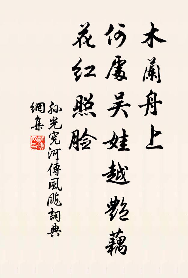 風颭,波斂,團荷閃閃,珠傾露1/1點。木蘭舟上,何處吳娃越艷:藕花紅照臉。
