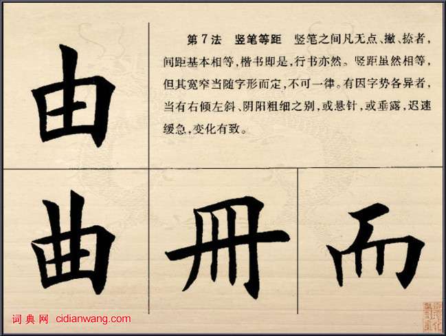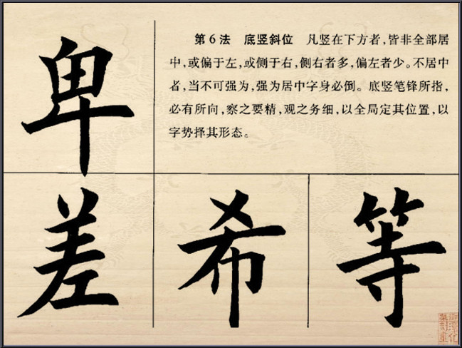 書法欣賞魏晉書法唐朝書法宋朝書法元朝書法明朝書法清朝書法近現代書法字典網>> 歷代書法>> 書法教程>> 田英章《解析歐體楷書結構28法》(4)正文 田英章《解析歐體楷書結構28法》(4)作者:田英章 書體:楷書 第六法: 底豎斜位。凡豎在下方者,皆非全部居中,或偏於左,或側於右,側右者多,偏左者少。不居中者,當不可強為,強為居中字身必倒。底豎筆鋒所指,必有所向,察之要精,觀之務細,以全局定其位置,以字勢擇其形態。見下圖:第七法: 橫筆等距。橫筆之間凡無點、撇、捺者,間距基本相等,其法同“豎筆等距”法。見下圖:首 頁 上一頁 1 2 3 4 5 6 7 8 9 10 下一頁 尾 頁田英章的相關書法作品:田英章楷書《九成宮》描紅本字帖 田英章《解析歐體楷書結構28法》 田英章硬筆行書間架結構28法 田英章楷書《岳陽樓記》 田英章楷書《百家姓》 田英章楷書《滕王閣序》 田英章楷書《顏氏家訓》 田英章硬筆書法基礎教程 動態圖 田英章《大楷九成宮醴泉銘》 相關文章:李祁·書札 (行書)【釋文】此宣公居江淮督府書也。公方弱冠。已有經綸天下之志。觀於此書可見矣。宋之中...林散之《草書自作詩軸》 (草書)林散之《草書自作詩軸》紙本草書 96×34cm 1977年 馬鞍山林散之藝術館...八大山人晚年作《安晚冊》引首【釋文】安晚。少文反所游履,圖之於室,此志也。甲戌夏至 退翁先生屬書 八大山...應均《四體書阮元句四條屏》 (四體)應均《四體書阮元句四條屏》 1937年 浙江永康萬泰美術館釋文: 浙東天一閣所藏...阮元《京邸看花詩》 (行書)阮元《行書京邸看花詩》,嘉慶十八年(癸酉)1813年,時年50歲,為瑾齋作。趙孟頫行書《紈扇賦》 (行書)趙孟頫行書作品欣賞《紈扇賦》(三希堂法帖刻本),書於大德九年(公元1305年)《...馬士達篆刻作品欣賞 (篆書)馬士達(1943--2012)書法篆刻家。別署驥者、老馬、玄廬。祖籍漣水,195...張祖翼《隸書集碑記四條屏》 (隸書)張祖翼《隸書集碑記四條屏》紙本隸書 133×29cm×4 常州市博物館藏。款...書法千萬不要忽視布局!書法作品由正文、落款及印章三部分構成,將其三個部分有機地結合在一起,進行總體的安...傑出的中國古代女書法家“世間有一類女子,不僅有如花般的美貌,還有著傳世才情”。在燦若星河的中國古代書法...