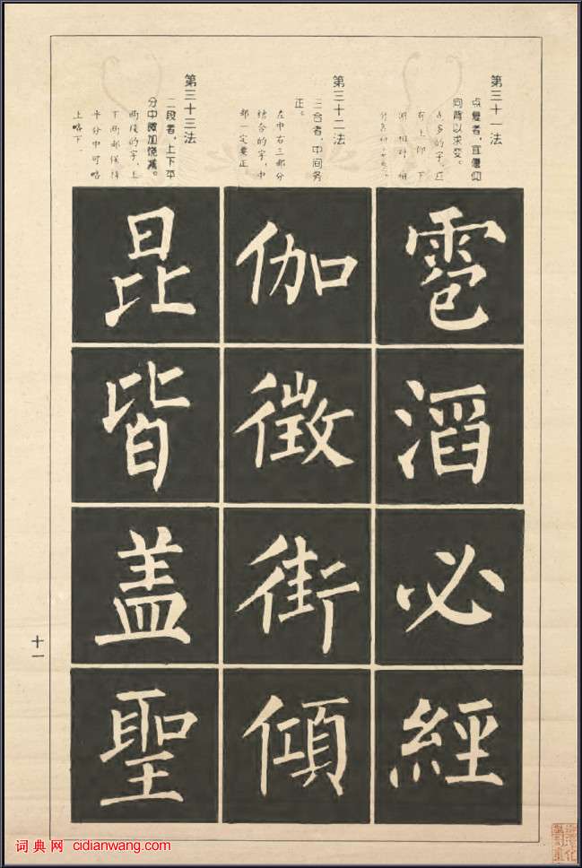 資源下載魏晉書法唐朝書法宋朝書法元朝書法明朝書法清朝書法近現代書法字典網>> 歷代書法>> 書法教程>> 柳公權楷書間架結構100法(11)正文 柳公權楷書間架結構100法(11)作者:不詳 書體:楷書 三十一法:點復者,宜偃仰向背以求變。點多的字,應有上仰、下俯、相對、相背各種姿態。三十二法:三合者,中間務正。左中右三部分結合的字,中部一定要正。三十三法:二段者,上下平分中微加銳減。兩段的字,上下兩部保持平分中可略上略下。首 頁 上一頁 7 8 9 10 11 12 13 14 15 16 下一頁 尾 頁相關文章:伊秉綬隸書《臨衡方碑》 (隸書)伊秉綬《臨衡方碑》 來自榮寶2010年春季藝術品拍賣會拍賣專場北京榮寶 2010...袁桷·一菴首座詩帖 (行書)【釋文】一菴首坐:久客大慈,比得會於萬壽,深湛宏博,連辱和篇,不可虛其雅意,用韻...沈周《行書五律詩軸》 (行書)沈周《行書五律詩軸》 縱129.3厘米 橫29.5厘米 蘇州博物館藏釋文:疏木...鄭燮《行書七言詩軸》 (行書)鄭燮《行書軸》 105 x 50 台北故宮博物院藏(蘭千山館暫存)釋文:皓首歸...北魏《姚伯多造像記》 (楷書)《姚伯多造像記》亦稱《姚文遷造像碑》,《姚伯多兄弟造成石文像》。 姚伯多造像碑是...中國10大隸書名碑!一、《石門頌》評價:隸中草書,字隨石勢,參差錯落,縱橫開闔,灑脫自如,意趣橫生。...朱復戡《大篆範本》精品拓本 (大篆)朱復戡(1902—1989),原名義方,字百行,號靜龕,40歲後更名起,號復戡,...宋庠·致宮使少卿尺牘 (行書)【釋文】庠叩頭拜覆 拜違教約 歘忽經年 下情不勝犬馬戀德之至 即日袢暑 恭惟尊候...楊妹子·七言詩一首 (楷書)楊妹子《七言詩一首》,楷書,美國普林斯頓大學附屬圖書館藏。祝允明·行書牡丹賦 (行書)此卷行書《牡丹賦》,有自題云:“甲申歲春三月望日,過湯氏西園觀牡丹盛開,廷用酒次...
