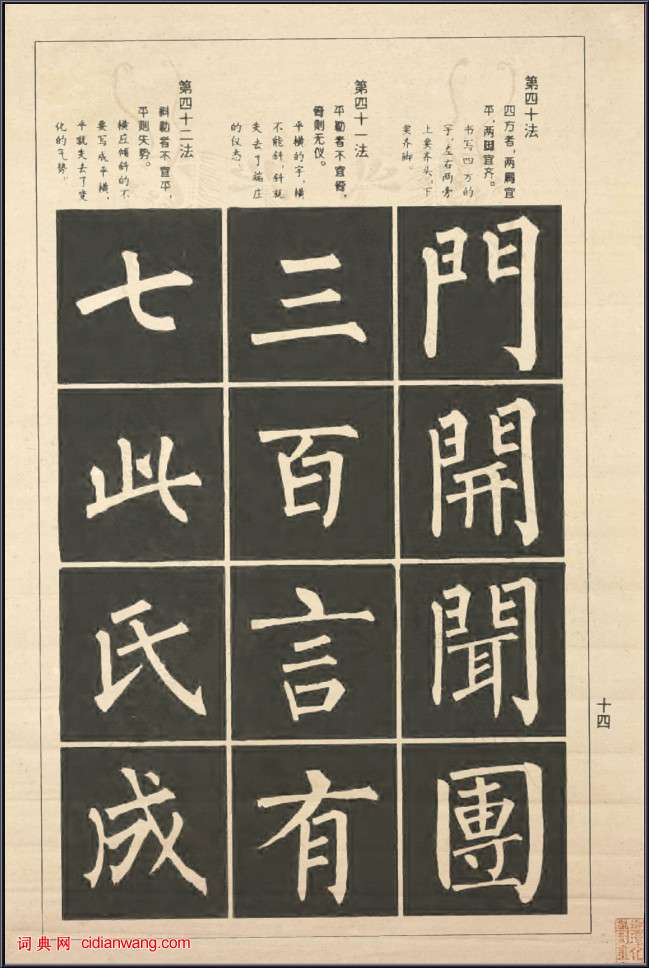資源下載魏晉書法唐朝書法宋朝書法元朝書法明朝書法清朝書法近現代書法字典網>> 歷代書法>> 書法教程>> 柳公權楷書間架結構100法(14)正文 柳公權楷書間架結構100法(14)作者:不詳 書體:楷書 四十法:四方者,兩肩宜平,兩腳宜齊。書寫的字,左右兩旁上要齊頭,下要齊腳。四十一法:平勒者不宜倚,倚者無儀。平橫的字,橫不能斜,斜就失去了端莊的儀態。四十二法:斜勒者不宜平,平則失勢。橫應傾斜的不要寫成平橫,平就失去了變化的氣勢。首 頁 上一頁 10 11 12 13 14 15 16 17 18 19 下一頁 尾 頁相關文章:金農《隸書題畫》 (隸書)隸書題畫 年代不詳 紙本 縱149厘米 橫146厘米 天津藝術博物館藏陸粲·行書事茗辨 (行書)陸粲《行書事茗辨》,於嘉靖乙末書於唐寅《事茗圖》卷後。縱31.1厘米,北京故宮博...徐渭行書題《墨葡萄》 軸 (行書)徐渭 《墨葡萄》 軸 紙本 縱166.3厘米 橫64.5厘米 北京故宮博物院藏 ...趙佶草書《噴香舞雪紈扇》 (草書)宋 趙佶《噴香舞雪紈扇》金花紋絹本,草書,24.4×23.2cm 美國哈佛大學...我學歐楷,選什麼版本好?關於歐楷字帖選擇的問題非常多,有一部分是關於臨寫今人歐楷的。如今歐楷已成一項非常...草聖林散之書法用筆50條!1、功夫須在用筆,畫之中間要下功夫,不看兩頭看中間,筆要能留。2、握筆不可太緊,...黃道周行書《洗心詩》 (行書)黃道周《洗心詩》 行書 日本藏釋文:塵垢辭虞夏,波瀾長布衣。花溪垂竹葉,砧杵靖...沙孟海《行書蘇軾詩四屏 》 (行書)沙孟海《行書蘇軾詩四屏 》紙本 143×23.5cm×4 1...東漢篆書《元和三年題記》 (篆書)東漢 元和三年題記 篆書 高24cm 寬7cm 四川蘆山縣發現張瑞圖草書《李夢陽登高以雨留山寺七律扇面》 (草書)張瑞圖《書李夢陽登高以雨留山寺七律扇面》泥金箋本草書 17.8×54cm 上海...