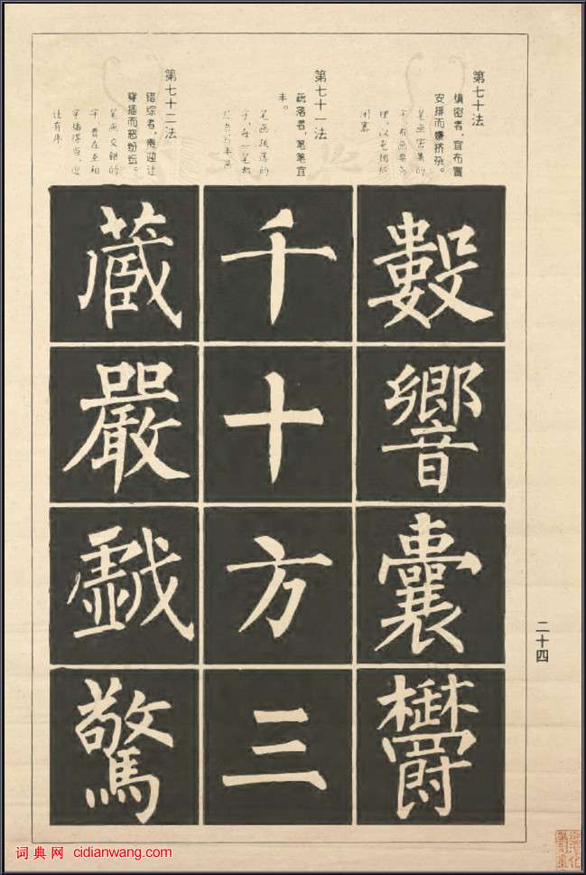 資源下載魏晉書法唐朝書法宋朝書法元朝書法明朝書法清朝書法近現代書法字典網>> 歷代書法>> 書法教程>> 柳公權楷書間架結構100法(24)正文 柳公權楷書間架結構100法(24)作者:不詳 書體:楷書 七十法:縝密者,宜布置安排而 擠雜。筆畫密集的字,布畫要條理,以免擁擠閉塞。七十一法:疏落者,筆筆宜豐。筆畫疏落的字,每一筆都應書寫豐滿。七十二法:錯綜者,貴應讓穿插而惡紛紜。筆畫交錯的字,貴在互相穿插的當,迎讓有序。首 頁 上一頁 20 21 22 23 24 25 26 27 28 29 下一頁 尾 頁相關文章:張弼草書《蝶戀花詞軸》 (草書)張弼《蝶戀花詞軸》紙本草書 148×59.4cm 北京故宮博物院藏。此軸以草書...姜逢元·草書紀游詩冊 (草書)姜逢元《草書紀游詩冊》,綾本,一冊二十頁,每頁縱27.5厘米,橫16厘米。引首鈐...何焯行書《趙嘏“汾上宴別”詩軸》 (行書)何焯《趙嘏“汾上宴別”詩軸》紙本行草 113×39.9cm 南京博物院藏【資料...王獻之《玉版十三行》魏晉小楷極品 (小楷)魏晉小楷是後世小楷變法的基礎,在鍾繇《宣示表》後,大體是有兩條發展脈絡:一條是按...黃道周楷書《贈龍尹詩扇》 (楷書)黃道周《贈龍尹詩扇》金箋 楷書 15×48.9cm 弘光元年(1645)北京故...李斯《嶧山刻石》全文 (篆書)刻石呈豎長方形,水成岩石質,四面刻字。碑高1.9米,寬0.48米,四面皆同。正面...李世民行書《晉祠銘》 (行書)李世民《晉祠銘》全稱《晉祠之銘並序》,唐太宗撰文並書。碑高195厘米,寬120厘...陳子壯行書《五言詩扇》 (行書)陳子壯《五言詩扇》金箋行書 18.1×51.3cm 上海博物館藏釋文:夙有達生...沈曾植行書《黃庭堅詩軸》 (行書)沈曾植《行書黃庭堅詩軸》紙本行書 145.8×40cm 北京故宮博物院藏釋文:...韓琦·信宿帖 (楷書)【釋文】琦再拜啟:信宿不奉儀色,共(恭)惟興寢百順。琦前者輒以《晝錦堂記》(容)...