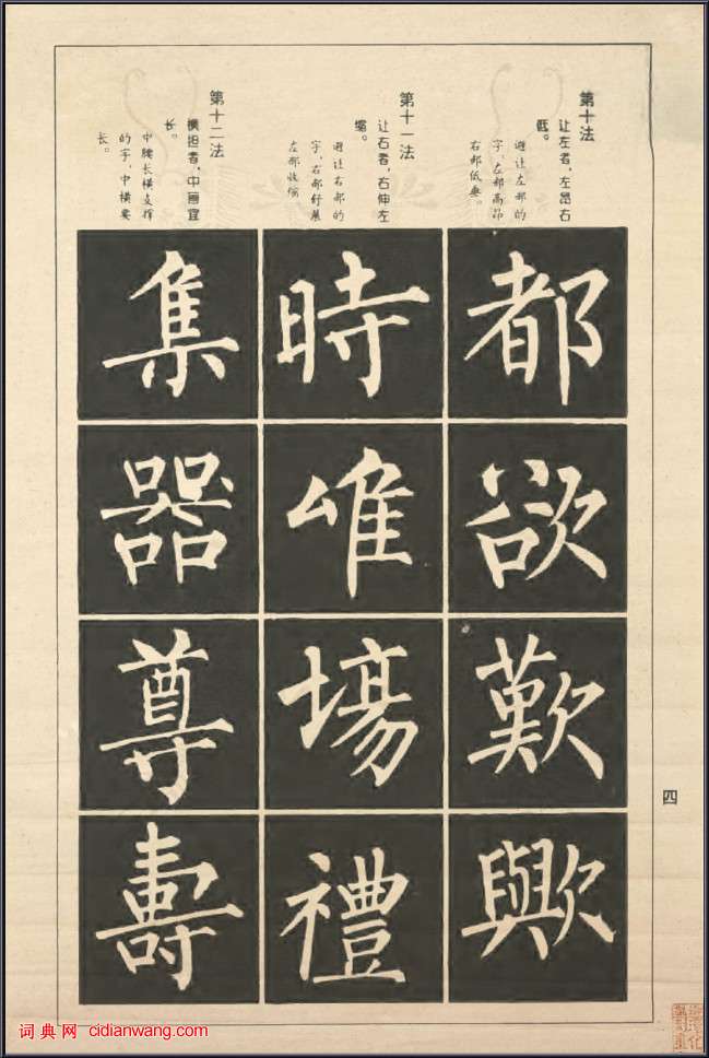 書法欣賞魏晉書法唐朝書法宋朝書法元朝書法明朝書法清朝書法近現代書法字典網>> 歷代書法>> 書法教程>> 柳公權楷書間架結構100法(4)正文 柳公權楷書間架結構100法(4)作者:不詳 書體:楷書 十法:讓右者,左昂右低。避讓左部的字,左部高昂,又不低垂。十一法:讓右者,右伸左縮。避讓右部的字,右部舒展,左部收縮。十二法:橫擔者,中畫宜長。中腰長橫支撐的字,中橫要長。首 頁 上一頁 1 2 3 4 5 6 7 8 9 10 下一頁 尾 頁相關文章:書法筆法,書法如何用鋒?書法講究運筆,運筆重在用鋒,怎樣用鋒呢?下面有分教!一、要學會中鋒用筆。也就是筆...三國·魏《毋丘儉紀功碑》 (隸書)三國·魏《毋丘儉紀功碑》 公元1906年, 吉林集安鄉民築路發現曹魏安邑侯平定...鮮于樞草書《杜甫魏將軍歌詩》 (草書)鮮于樞《草書杜甫魏將軍歌詩》紙本 行草書 縱48厘米 橫462厘米,北京故宮...李邕楷書《靈岩寺頌並序碑》墨拓 (楷書)李邕《靈岩寺頌並序碑》墨拓 濟南圖書館藏此為濟南圖書館所藏已割裱成冊的拓本,拓本...魯迅《行書悼楊銓詩》 (行書)魯迅《行書悼楊銓詩》24.2×27.3cm 1933年 北京魯迅博物館藏釋文:...東漢《夏承碑》民國石印本 (隸書)《夏承碑》民國石印本 濟南市圖書館藏此碑全稱《漢北海淳于長夏承碑》,又名《夏仲兗...華喦行書《題桃潭浴鴨圖》 (行書)華喦 《桃潭浴鴨圖》紙本 設色 271.5×137cm 1742年 北京故宮博...王羲之《平安帖》《何如帖》《奉橘帖》 (行書)王羲之《平安》帖 釋文:此粗平安修載來十餘 日諸人近集存想明日 當復悉來無由同 ...東漢隸書《延光殘碑》 (隸書)延光殘碑又稱“都官是吾碑”,東漢延光四年刻,康熙六十年(1721)山東諸城超然台...文徵明小楷《偶適溪樓輒題二十韻帖》 (小楷)明代文徵明楷書尺牘大圖欣賞《偶適溪樓輒題二十韻帖》,尺寸:29x67厘米,台北故...