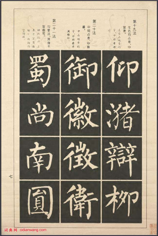 書法欣賞魏晉書法唐朝書法宋朝書法元朝書法明朝書法清朝書法近現代書法字典網>> 歷代書法>> 書法教程>> 柳公權楷書間架結構100法(7)正文 柳公權楷書間架結構100法(7)作者:不詳 書體:楷書 十九法:左右均占者,中宜遜。左右占地步的字,中部要避讓。二十法:中間占者,中獨雄。中占地步的字,中部要豐滿雄壯。二十一法:勾孥法,其身不宜曲短。橫折鉤法,其身不宜彎曲短小,折鉤作豎鉤狀。首 頁 上一頁 3 4 5 6 7 8 9 10 11 12 下一頁 尾 頁相關文章:倪元璐《草書故人隔天風五言律詩軸》 (草書)倪元璐《草書故人隔天風五言律詩軸》綾本草書 169×40cm 山西博物院藏釋文...吳志淳·書札 (草書)【釋文】墨法四首錄上。南谷師一笑。吳志淳。久知墨訣在丹丘。子獨來從逐客求。霧冷歙...顏真卿雅集《竹山堂連句》 (楷書)顏真卿楷書《竹山堂連句》是魯公傳世不多的墨跡之一。雖然這幅作品沒有其他傳世作品的...米芾行書《砂步詩帖》 (行書)米芾 砂步詩帖 紙本 行書 北京故宮博物院藏,29.6X38.5cm米芾《砂步詩...張宇初·道家識語 (行草)【釋文】清微之謂道中之法也。以其非復天神霄酆岳者比焉。而非功行圓融。心法貫妙者。...高邕《行書丹光玉氣七言聯》 (行書)字邕之,號李盦,自署苦李,更號赤岸山民。仁和(今杭州)人,寓上海,官江蘇縣丞。工...唐寅 漫興墨跡 (行書)《唐寅漫興墨跡》是其為友人所書的自作漫興詩,通卷千餘字一氣呵成,用筆精到細膩,體...高鳳翰《隸書江亭客興詩軸》 (隸書)高鳳翰《隸書江亭客興詩軸》紙本隸書 139.9cm×48cm 1729年作 上...鄭思肖·跋《葉鼎隸書金剛經冊》 (行書)鄭思肖跋《葉鼎隸書金剛經冊》。 葉鼎,字和仲,號山澗,古括(今浙江麗水東南)人。...鄭燮《行書李白詩軸》 (行書)鄭燮 《行書李白詩軸》紙本行書 174×90cm 濟南市博物館藏 釋文:陶令辭...