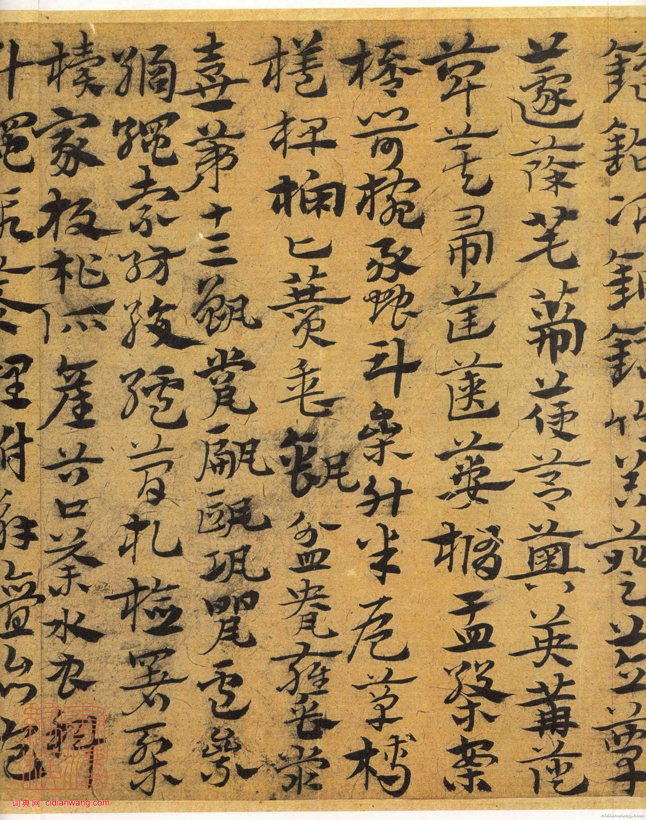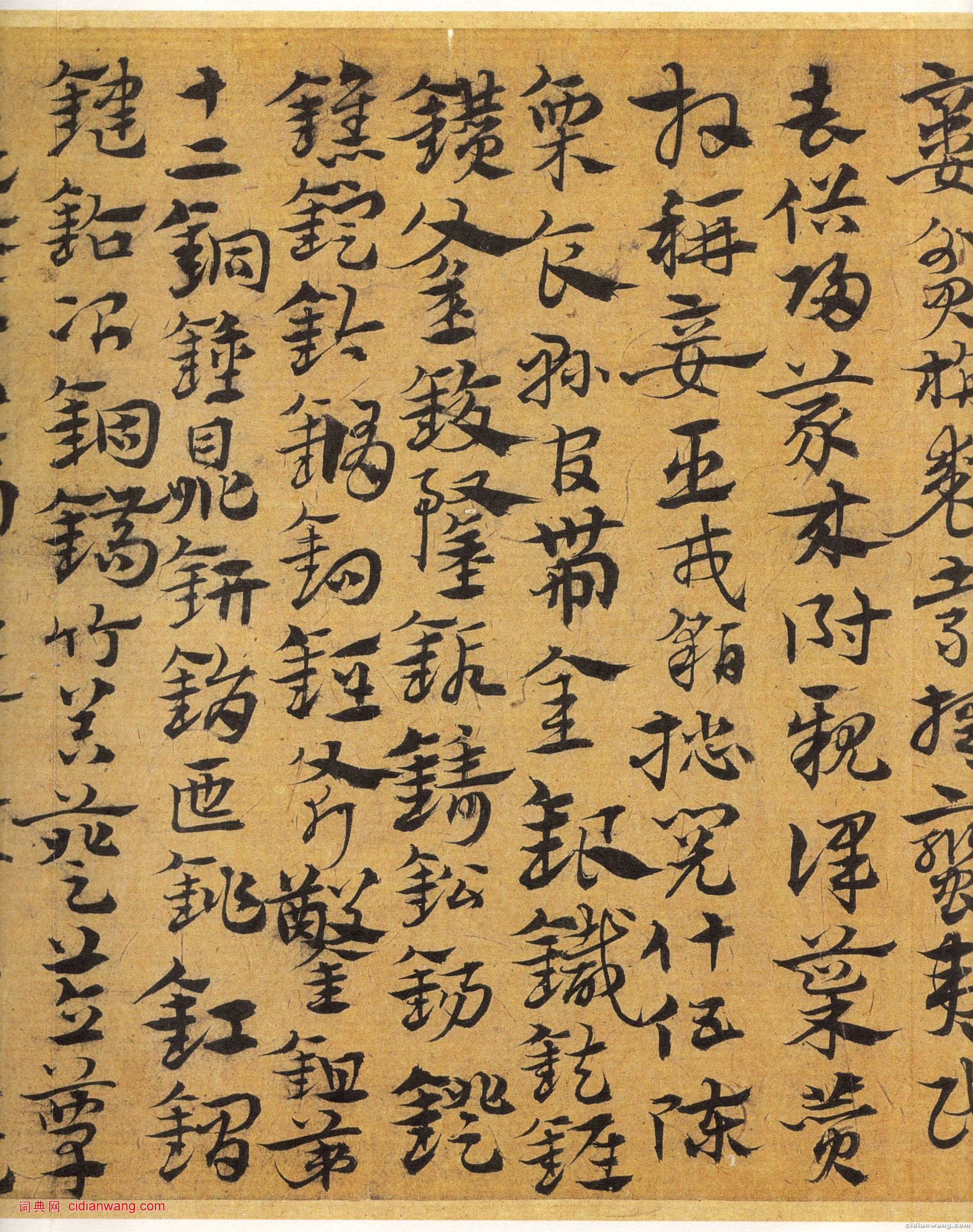 書法欣賞魏晉書法唐朝書法宋朝書法元朝書法明朝書法清朝書法近現代書法字典網>> 歷代書法>> 明朝>> 宋克《急就章》(2)正文 宋克《急就章》(2)作者:宋克 書體:草書 首 頁 上一頁 1 2 3 4 5 下一頁 尾 頁 全文2014-3-2 10:19:07 宋克的相關書法作品:宋克《閒居詩》 宋克《草書韓偓七絕條幅》 宋克《急就章》 宋克章草《急就章》 宋克·張懷瓘論用筆十法 宋克《唐張懷瓘論用筆十法》 宋克·孫過庭書譜冊 宋克《唐張懷瓘論用筆十法》 相關文章:趙孟頫行書《歸去來並序》 (行書)趙孟頫書法長卷《歸去來並序》,大德元年(公元1297年)作。紙本,縱46.7厘米...仇遠行楷《跋王獻之保母帖·》 (行楷)元代仇遠書法題跋《王獻之保母帖》,行楷,故宮博物院藏。釋文:李氏墓下二尺磚,蛟螭...東漢隸書《西嶽華山廟碑》 (隸書)《華山廟碑》(四明本)北京故宮博物院藏東漢隸書碑刻。篆額題《西嶽華山廟碑》。延熹...陳元素《行書錄王世貞詩句扇面》 (行書)陳元素《行書錄王世貞詩句扇面》行書 17.5×53cm 美國紐約大都會藝術博物...翁方綱·行書七言詩 (行書)翁方綱 癸丑(1793年)作 行書七言詩 立軸。倪元璐草書《默坐五律詩軸》 (草書)倪元璐《行書謝翱五律詩軸》綾本行書 157.1×41.5cm 上海博物館藏 釋...王庭筠《跋米芾研山銘》 (行書)王庭筠跋米芾《研山銘》。釋文:鳥跡雀形,字意極古,變態萬狀,筆底有神,黃華老人王...曾熙篆書《百歲一德八言聯》 (篆書)曾熙《篆書百歲一德八言聯》紙本篆書 168×38cm×2釋文:百歲之人古頌上...蘇軾楷書《司馬溫公神道碑》 (楷書)《司馬溫公神道碑》,是蘇軾五十三歲所作。李苦禪大師跋以評之“蘇楷書當以此帖為第一...趙之琛篆書《摹古軸》 (篆書)趙之琛《篆書摹古軸》紙本篆書 131.5×60.5cm 南京博物院藏釋文:唯三...