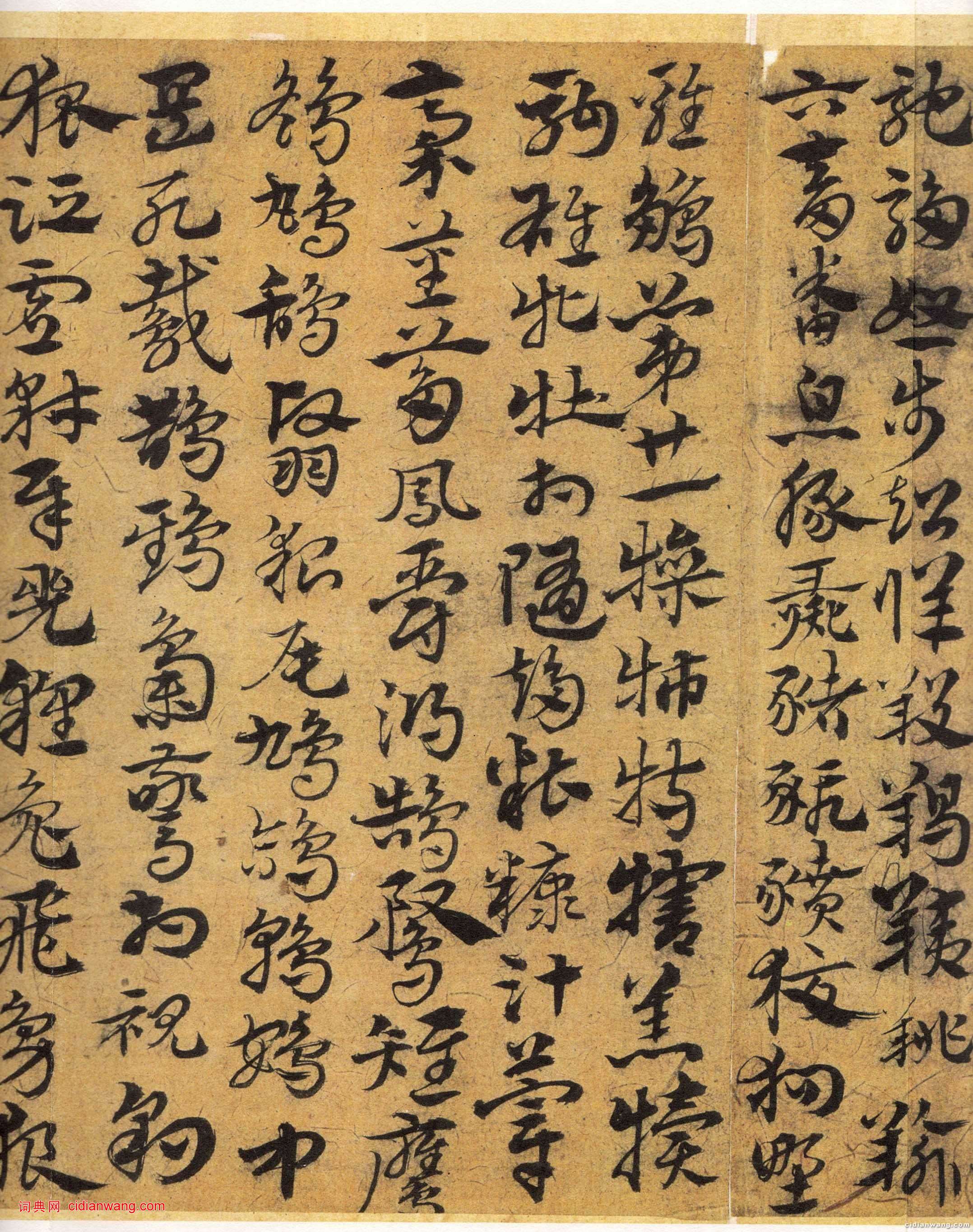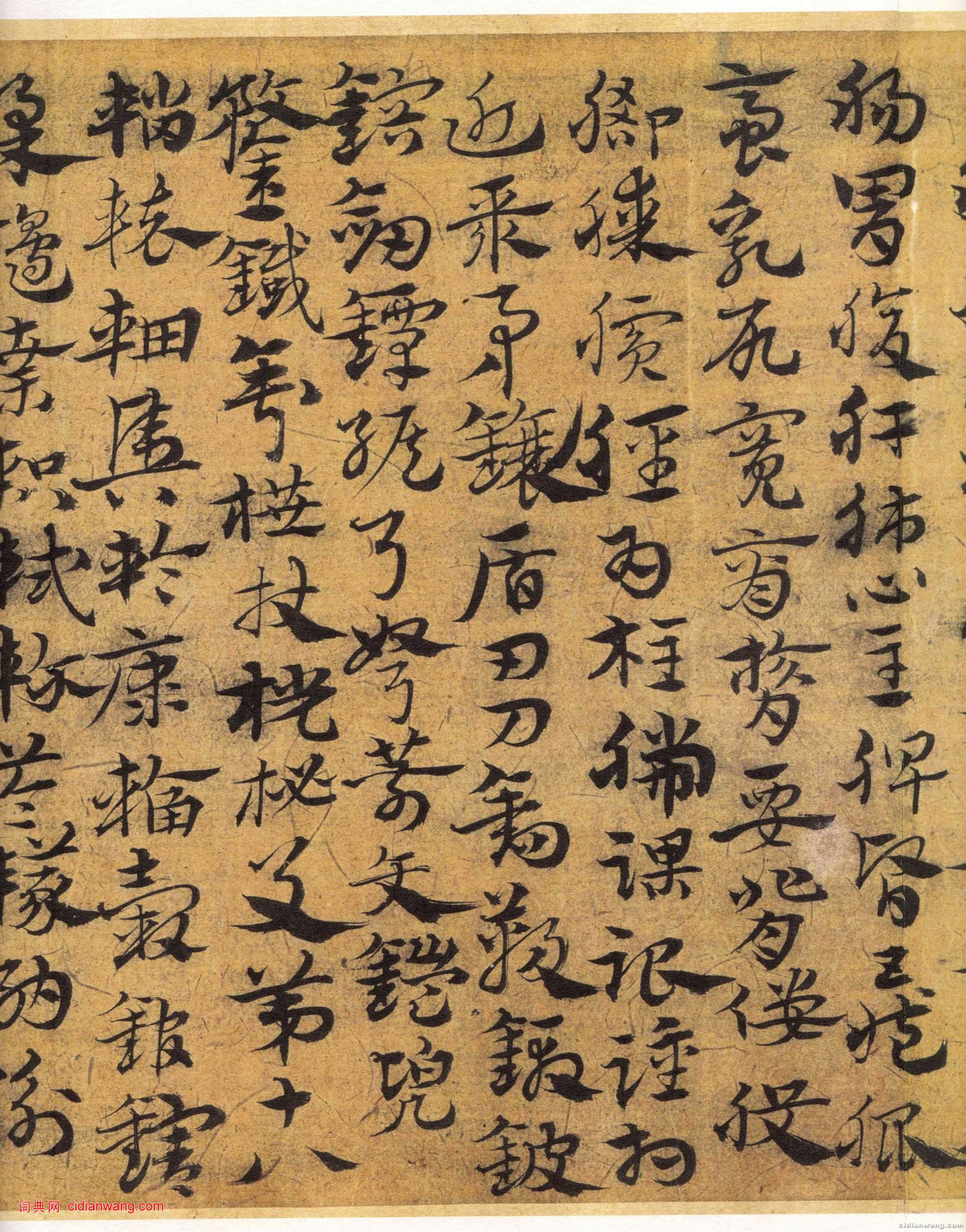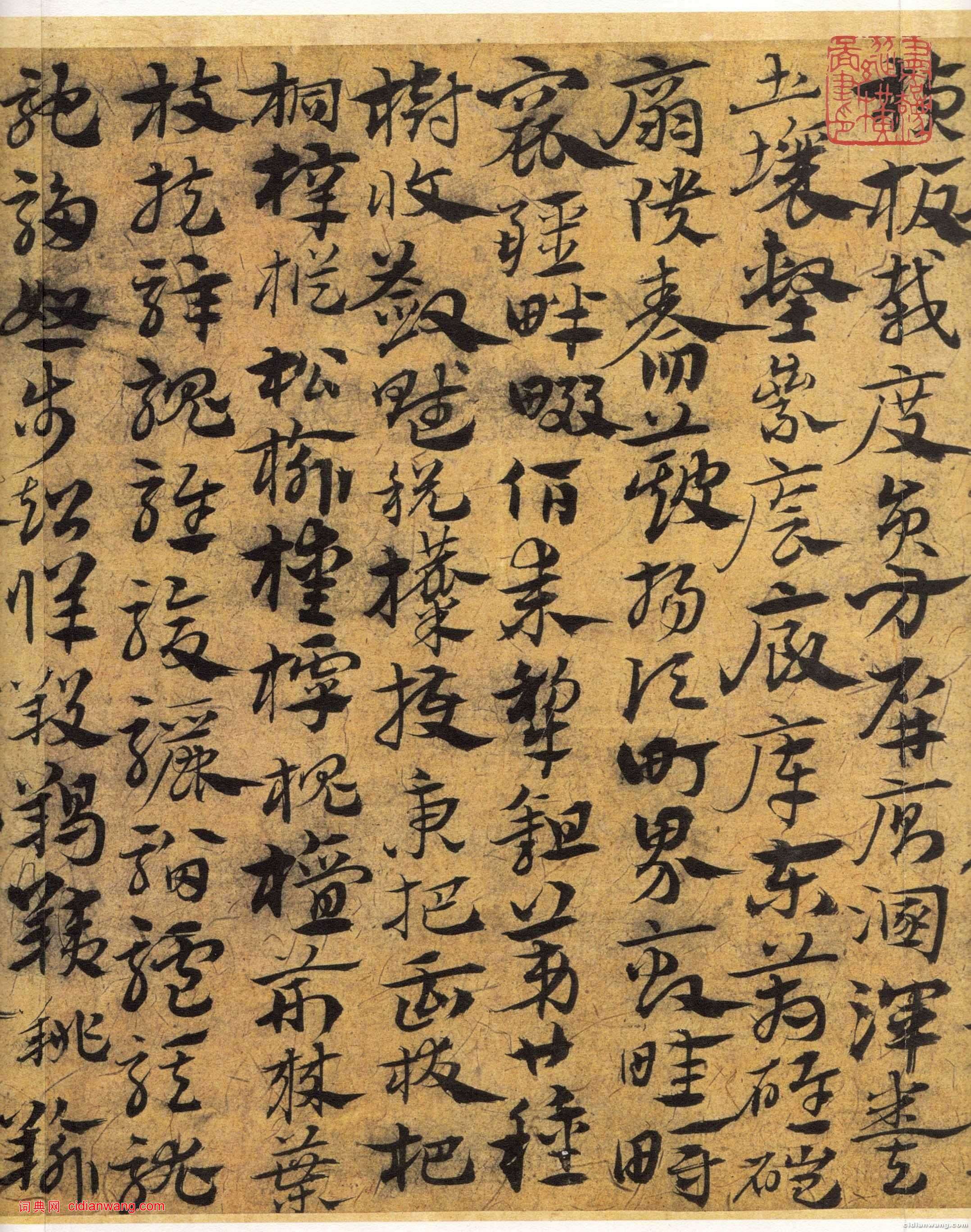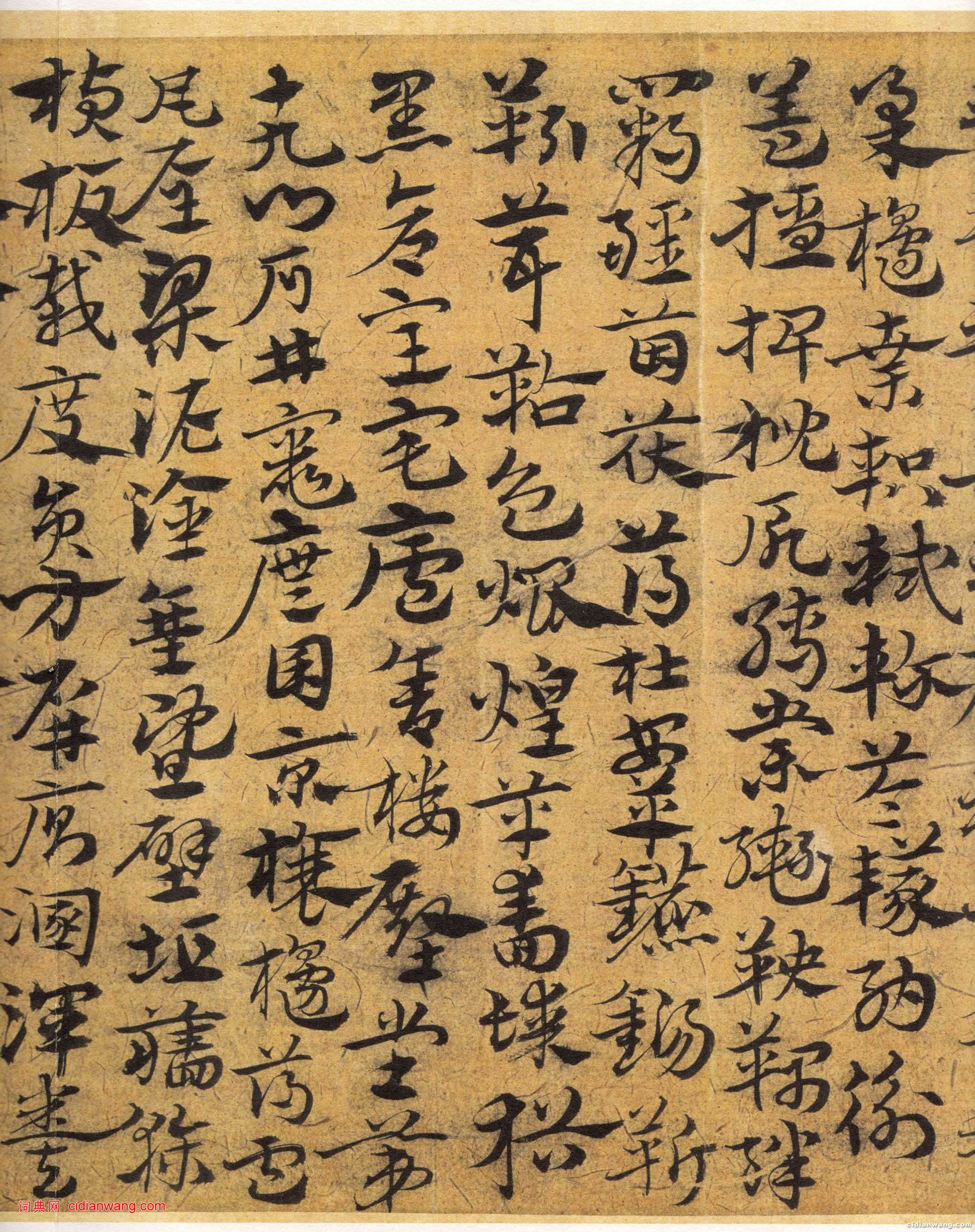 書法欣賞魏晉書法唐朝書法宋朝書法元朝書法明朝書法清朝書法近現代書法字典網>> 歷代書法>> 明朝>> 宋克《急就章》(3)正文 宋克《急就章》(3)作者:宋克 書體:草書 首 頁 上一頁 1 2 3 4 5 下一頁 尾 頁 全文2014-3-2 10:19:07 宋克的相關書法作品:宋克章草《急就章》 宋克·張懷瓘論用筆十法 宋克《唐張懷瓘論用筆十法》 宋克《閒居詩》 宋克《唐張懷瓘論用筆十法》 宋克《草書韓偓七絕條幅》 宋克《急就章》 宋克·孫過庭書譜冊 相關文章:米芾行書《天馬賦》版本二 (行書)《天馬賦》(傳)是北宋大書法家米芾的行書作品。在米芾傳世的作品中,《天馬賦》被康...王慈草書《汝比帖》 (草書)王慈草書《汝比帖》 於遼寧省博物院藏的《唐摹萬歲通天帖》王慈《汝比帖》釋文:汝比...王羲之《上虞帖》 (草書)唐摹王羲之草書硬黃本。高23.5厘米,橫26厘米,共七行,五十八字。體勢靈動綽約...蘇軾行書《春中帖》 (行書)蘇軾行書《春中帖》 紙本,縱28.2cm 橫43.1cm 故宮博物院藏。此帖是蘇...祝允明草書《自書詩卷》 (草書)祝允明《自書詩卷》 紙本草書,47.3×321.3cm 正德十五年(公元152...董其昌《臨柳公權書蘭亭詩》 (行書)董其昌《臨柳公權書蘭亭詩》(局部),行書,紙本。縱27.2公分,橫1072公分。...陳淳草書《雪夜對客五言詩扇面》 (草書)陳淳《雪夜對客五言詩扇面》草書 台北故宮博物院藏釋文:獨臥滄江上,風高雪復深。故...何崝《甲骨文字歌》 (篆書)何崝,四川成都人,生於1947年7月。字士耕,號啃軒,又號腐公、錦里先生,齋號十...蘇解篆書《蘇解為陶蓋文》 (篆書)這是一幀極為珍貴和饒有趣味的陶刻文字拓片,陶蓋文曰:“蘇解為”。據近人陳邦懷先生...蘇軾行書《廷平郭君帖》 (行書)蘇軾《廷平郭君帖》 書於1071年(熙寧四年) 行書釋文:軾啟 辱教 具審孝履支...