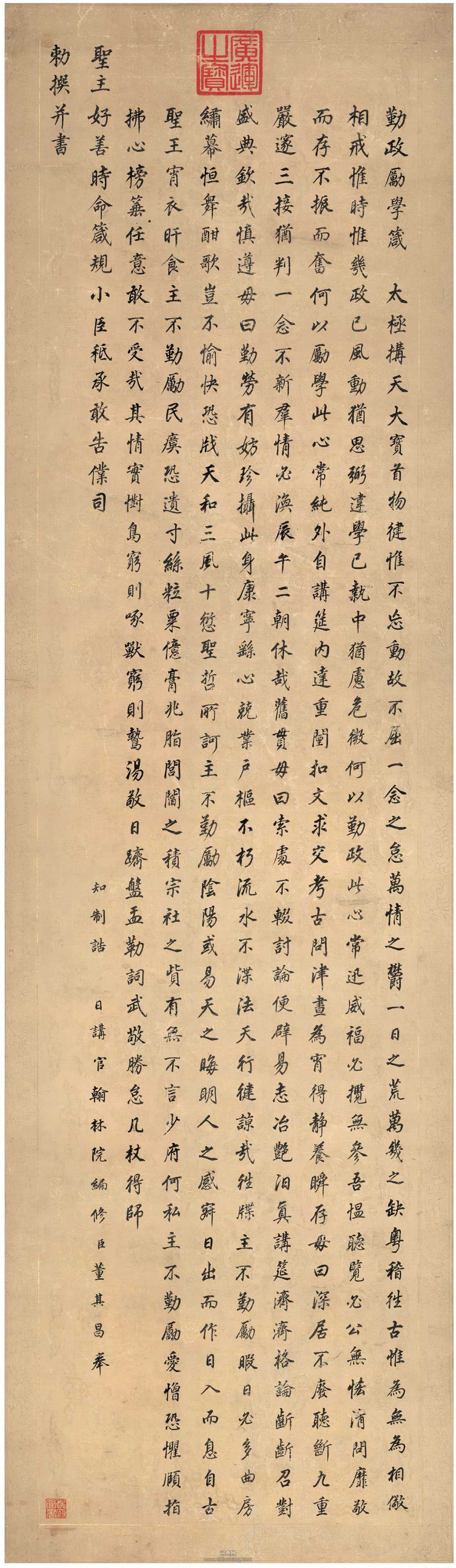 董其昌《楷書勤政勵學箴》,縱214.5厘米,橫61.8厘米,現藏遼寧省博物館。