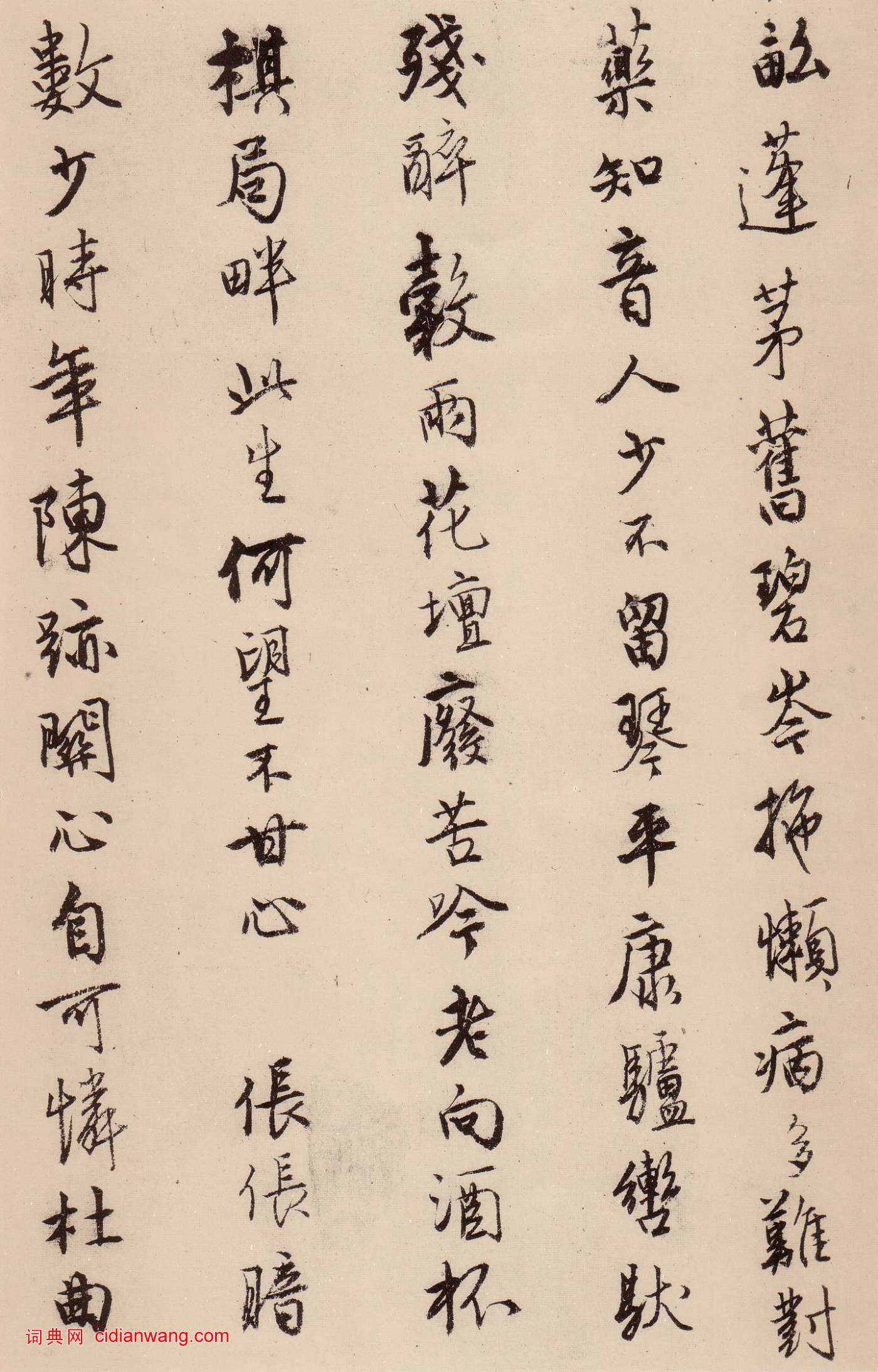 平康巷陌倦遊人。狼藉桃花中酒身。短夢風煙千里蝶。多情弦索一床塵。