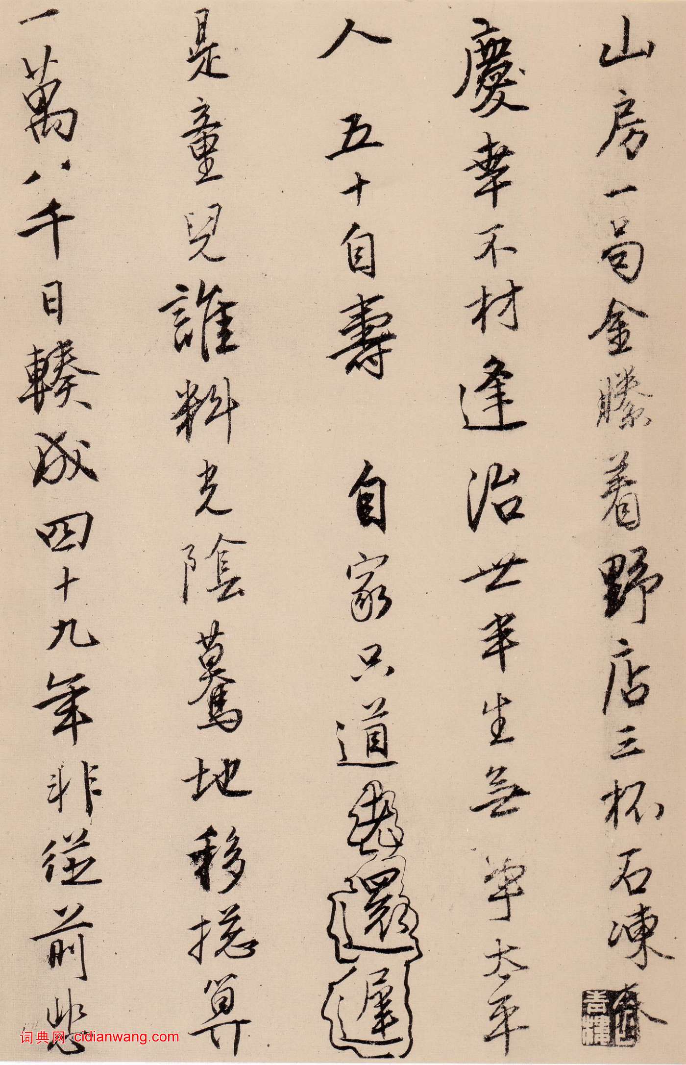 前程兩袖黃金淚。公案三生白骨禪。老後思量應不悔。衲衣乞食院門前。
