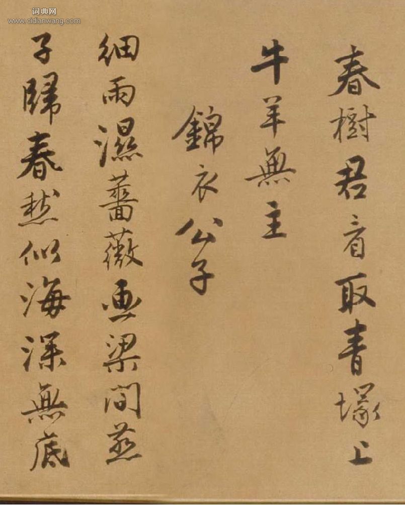 書法欣賞魏晉書法唐朝書法宋朝書法元朝書法明朝書法清朝書法近現代書法字典網>> 歷代書法>> 明朝>> 唐寅·自書詞卷(4)正文 唐寅·自書詞卷(4)作者:唐寅 書體:行書 首 頁 上一頁 1 2 3 4 5 6 7 8 9 10 下一頁 尾 頁唐寅的相關書法作品:唐寅行書 《秋風紈扇圖題詩》 唐寅行書《飲中八仙歌》 唐寅行書《蜀葵圖扇面》 唐寅行書《贈西洲詩卷》 唐寅《行書七律卷》 唐寅行書自題《王蜀宮妓圖》 唐寅《吳門避暑詩》 唐寅行書《七言絕句四條屏》 唐寅《行書與若容手書冊》 相關文章:陳淳·《荷花小鳥圖》題跋 (行書)陳淳《荷花小鳥圖》題跋,水墨紙本。伊秉綬隸書《清門嘉日七言聯 》 (隸書)隸書七言聯 紙本 見於中國嘉德國際拍賣有限公司2006秋季拍賣會 ...張宇初·道家識語 (行草)【釋文】清微之謂道中之法也。以其非復天神霄酆岳者比焉。而非功行圓融。心法貫妙者。...鮮于樞·跋張先《十詠圖》 (行草)鮮于樞跋張先《十詠圖》,故宮博物館藏。《十詠圖》卷,宋,張先繪,絹本,淡設色,畫...吳熙載·篆書崔子玉座右銘四條屏 (篆書)【釋文】崔子玉座右銘。毋道人之短,毋說己之長。施人慎勿念,受施慎勿忘。世譽不足慕...劉墉行書 《節臨薛紹彭蘭亭序臨本軸》 (行書)劉墉《節臨薛紹彭蘭亭序臨本軸》行書 128×60.5cm 山東省博物館藏 釋...田蘊章楷書《千字文》 (楷書)千字文,由南北朝時期梁朝散騎侍郎、給事中周興嗣編纂、一千個漢字組成的韻文(在隋唐...楊絳小楷《槐聚詩存》 (小楷)2013年,楊絳先生出版了250萬字的文集八卷,這不僅是文學的奇觀,也是生命的奇...皇甫沖·題唐寅《金昌送別圖》詩 (行書)【釋文】春日送忍齋母舅先生招游虎丘,漫賦。名山叨勝分,軒盡喜返趨。盤送黃金饌,醪...吳大澂《篆書白鶴泉銘》 (篆書)吳大澂《篆書白鶴泉銘》 釋文:光緒十有八年,歲在壬辰九月九日,撫湘使者...