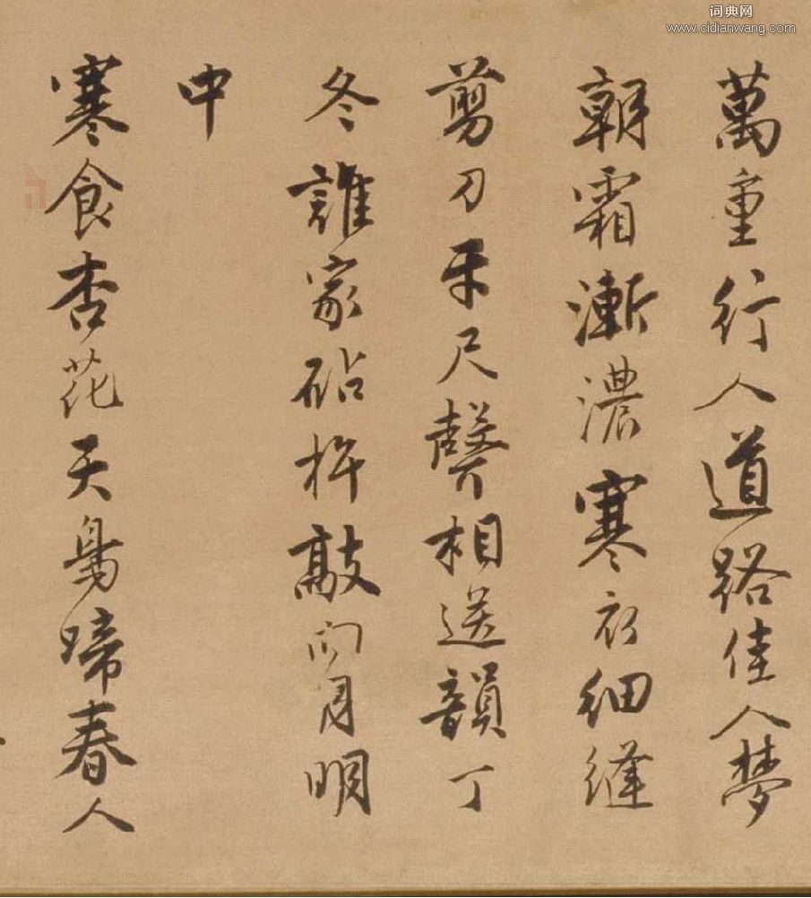 書法欣賞魏晉書法唐朝書法宋朝書法元朝書法明朝書法清朝書法近現代書法字典網>> 歷代書法>> 明朝>> 唐寅·自書詞卷(5)正文 唐寅·自書詞卷(5)作者:唐寅 書體:行書 首 頁 上一頁 1 2 3 4 5 6 7 8 9 10 下一頁 尾 頁唐寅的相關書法作品:唐寅行書《七言絕句四條屏》 唐寅《行書題松崖圖五言詩扇面》 唐寅行書《贈西洲詩卷》 唐寅行書《七律四首詩卷》 唐寅行書《自書聯句詩》 唐寅《行書絕句四條屏》 唐寅行書《七律詩軸》龍頭獨對五千文 唐寅《行書與若容手書冊》 唐寅行書《跋宋王詵江山疊翠圖》 相關文章:文徵明行草《憶昔四首次陳魯南韻》軸 (行草)文徵明行草軸 縱158厘米、橫71.5厘米。釋文:紫殿東頭敞北扉,史臣都著尚方衣...憨山《永嘉真覺大師證道歌》 (行書)憨山|明代"四大高僧"之一,明金陵全椒縣古蔡淺人(今安徽和縣綽廟先鋒村)。俗姓蔡...實用的篆刻印章印模本文把常見的篆刻印章印模分門別類,實用性強,很有參考價值。主要分為肖形印系列、古...趙孟堅行書 《題大年小景圖》 (行書)趙孟堅《題大年小景圖》紙本行書 35.8×675.6cm 北京故宮博物院藏即《...劉墉行書《天機范水七言聯》 (行書)劉墉《天機范水七言聯》描花絹本行書 131.5×32cm×2 釋文:天機道筦...怎樣臨習《張遷碑》 (隸書)一、《張遷碑》簡介 《張遷碑》,全稱《漢故城長盪陰令君表頌》,亦稱《張遷表頌》。...祝允明·小楷千字文 (小楷)此為祝允明所書之《千字文》,卷末題署年月為“成化丙午仲夏九日”,其時祝允明二十六...練毛筆字入門常識:怎么選墨第二節 墨一、墨的種類選擇墨是寫毛筆字的黑色顏料,古時候以礦物質氧化錳為墨,叫石...祝允明行草《自作詩四首》 (行草)祝允明擅詩文,尤工書法,名動海內。他與唐寅、文徵明、徐禎卿並稱“吳中四才子”。又...北齊《泰山佛說金剛經》 (隸書)《泰山經石峪》,又名《泰山佛說金剛經》,摩崖石刻,北齊天保間刻,刻于山東泰山斗母...