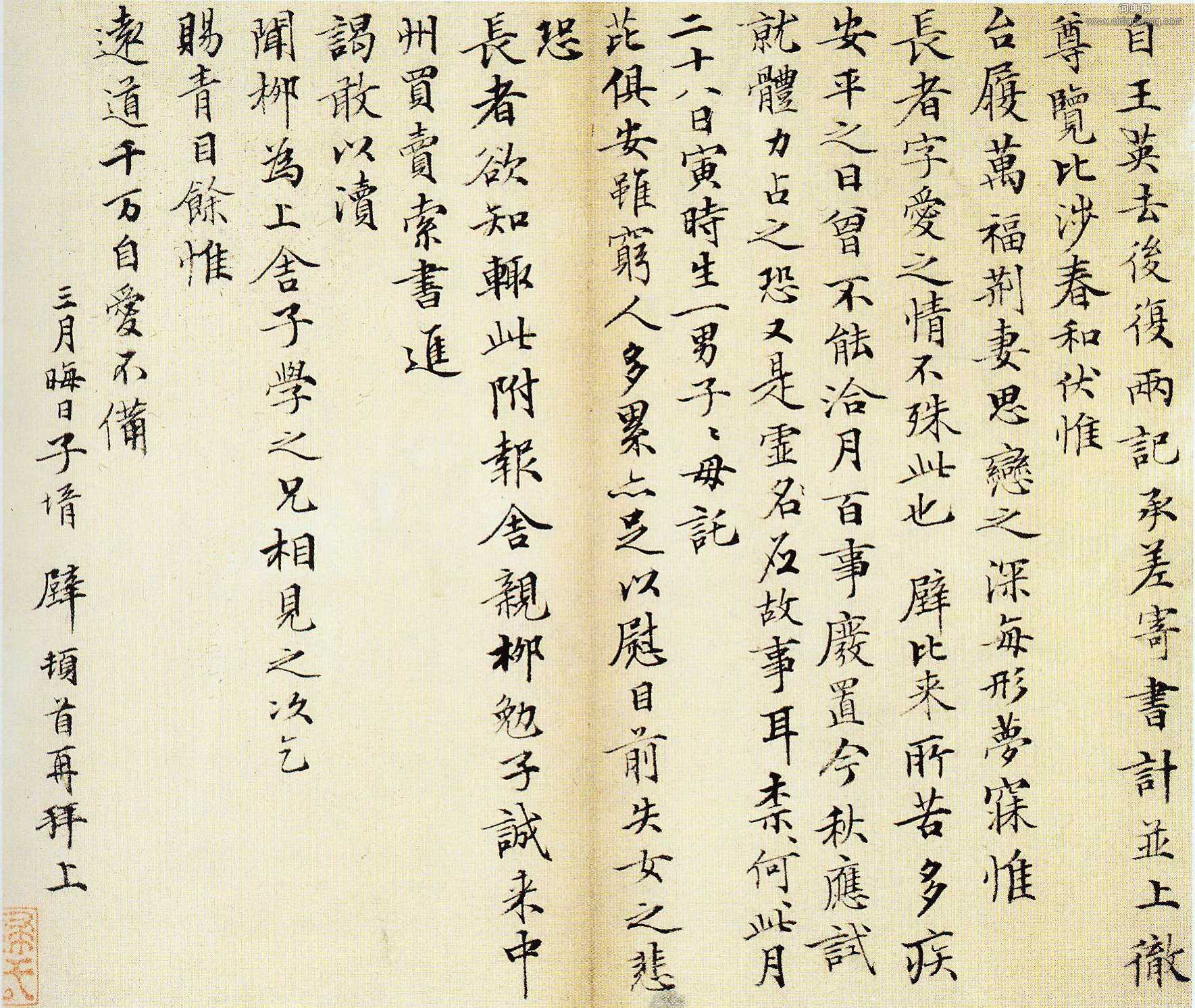 書法欣賞魏晉書法唐朝書法宋朝書法元朝書法明朝書法清朝書法近現代書法字典網>> 歷代書法>> 明朝>> 文徵明《王英去後帖》正文 文徵明《王英去後帖》作者:文徵明 書體:楷書 明 文徵明《王英去後帖》,楷書尺牘,故宮博物院藏。文徵明(1470-1559),明代書畫家、文學家。初名壁,字徵明,號衡山居士,長洲(今江蘇吳縣)人。工行、草書,尤精小楷,亦能隸書。在盡興的書寫中,往往流露出溫文的儒雅之氣。文徵明的相關書法作品:文徵明·跋祝允明草書赤壁賦冊 文徵明89歲所臨《蘭亭序》 文徵明·落花詩冊 文徵明88歲力作《琵琶行》 文徵明《歸去來兮辭》 文徵明《前赤壁賦》 文徵明·跋張即之《汪氏報本庵記》 文徵明《偶適溪樓帖》 文徵明行書滕王閣序 相關文章:歐陽詢楷書《郭雲墓誌》 (楷書)歐陽詢楷書郭雲墓誌,原刻民國拓本,定遠縣,唐貞觀5年(631)10月6日,托裱折...鄭板橋《戒子銘》 (行書)鄭板橋(1693-1765),原名鄭燮(xiè 音:“謝”),字克柔,號理庵,...倪元璐行草《致崑生札》 (行草)倪元璐《致崑生札》紙本行草書 27.1×12cm ×2 浙江省博物館藏 釋文...傅山草書《晉公千古一快四條屏》 (草書)傅山《晉公千古一快四條屏》軸 綾本 201x51.7cm x4 康熙二十三年(1...包世臣《楷書坡老語軸》 (楷書)包世臣《楷書坡老語軸》紙本楷書 130×57.7cm 北京故宮博物院藏釋文:朝...傅山《草書七言絕句立軸》 (草書)傅山《草書七言絕句立軸》 軸 絹本 縱178.5cm 橫49cm 西泠印社藏資料...倪元璐行草《默坐五律詩軸》 (行草)倪元璐《默坐五律詩軸》紙本行草書 131.2×47.4cm 首都博物館藏釋文:...倪元璐《草書故人隔天風五言律詩軸》 (草書)倪元璐《草書故人隔天風五言律詩軸》綾本草書 169×40cm 山西博物院藏釋文...魯迅行書《韋素園墓記》 (行書)魯迅《韋素園墓記》 144×68.7cm 1934年 北京魯迅紀念館藏釋文: ...虞世南行草《疲朽帖》 (行草)虞世南《疲朽帖》拓本 行草書 25.7×43厘米 《淳化閣帖》卷四收錄 上海博...