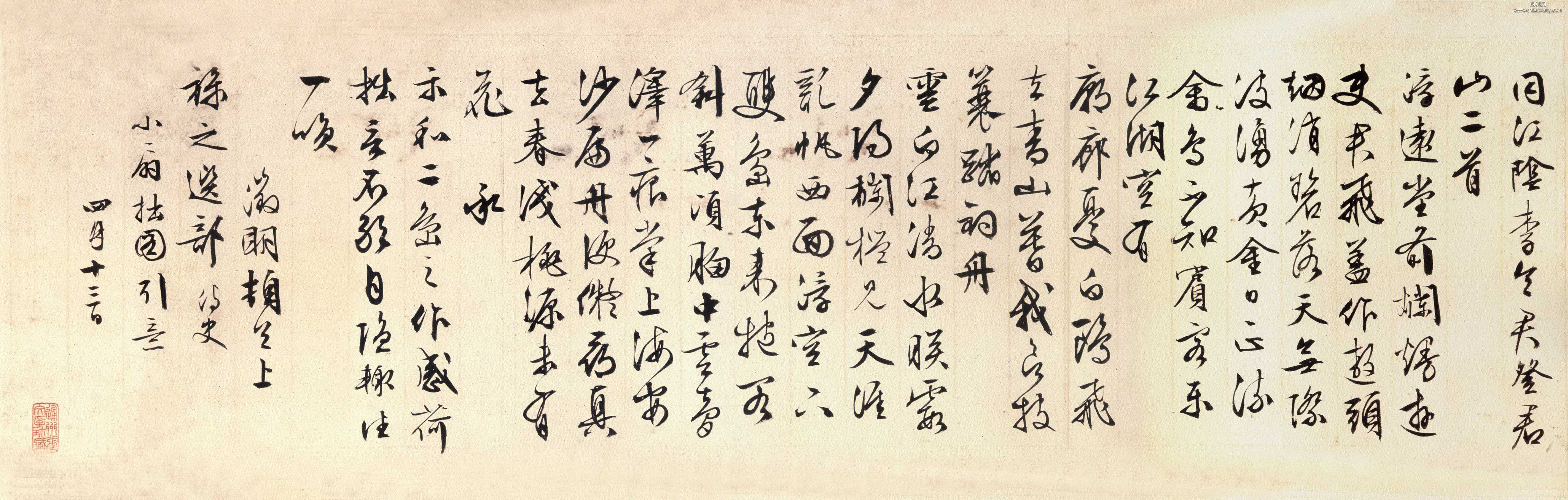 書法欣賞魏晉書法唐朝書法宋朝書法元朝書法明朝書法清朝書法近現代書法字典網>> 歷代書法>> 明朝>> 文徵明《登君山》正文 文徵明《登君山》作者:文徵明 書體:行書 【釋文】同江陰李令君登君山二首。浮遠堂前爛漫遊,使君飛蓋作遨頭。煙消碧落天無際,波涌黃金日正流。禽鳥不知賓客樂,江湖空有廟廊憂。白鷗飛去青山暮,我欲披縰踏釣舟。雲白江清水映霞,夕陽欄檻見天涯。亂帆西面浮空下,雙島東來抱閣斜。萬頃胸中雲夢澤,一痕掌上海安沙。扁舟便擬尋真去,春淺桃源未有花。承示和二島之作,感荷,拙章不敢自隱,輒往一笑。徵明頓首上祿之選部侍史,小扇拙圖引意。四月十三日。 明 文徵明《行書登君山》,行書,紙本,天津藝術博物館藏。文徵明的相關書法作品:文徵明《偶適溪樓帖》 文徵明《跋右軍十七帖》 文徵明《跋祝允明草書赤壁賦冊》 文徵明·行書自作詩卷 文徵明88歲力作《琵琶行》 文徵明《王英去後帖》 文徵明·跋趙孟頫《汲黯傳》 文徵明大字行書《梅花詩》 文徵明89歲所臨《蘭亭序》 相關文章:鄧石如篆書《白氏草堂記六屏》 (篆書)鄧石如篆書白氏草堂記六屏,此屏高近二百厘米,現藏於日本。鄧石如篆、隸、楷、行、草...查昇《行書七絕詩軸》 (行書)查昇《行書七絕詩軸》綾本行書 197×47.5cm 福建博物院藏 釋文:斷汊...康有為行書《護世游天五言聯軸》 (行書)康有為《護世游天五言聯軸》 紙本行書 130cm×32cm×2 丙寅(1...黃庭堅草書《蘇軾赤壁懷古》 (草書)北宋黃庭堅行草書法欣賞《黃魯直書大江東詞》原始拓本18圖赤壁懷古民國拓本,蘇軾撰...趙孟頫楷書《崑山州淮雲院記》 (楷書)元·趙孟頫 楷書《崑山州淮雲院記》,此帖是趙書成熟時期的大楷書代表作。書法風格...傑出的中國古代女書法家“世間有一類女子,不僅有如花般的美貌,還有著傳世才情”。在燦若星河的中國古代書法...書法答問【書友】有觀點說趙在元朝為官,字顯奴氣,您怎么理解?【書法君】站著說話不腰疼!其...《書譜》筆法淺談之——起筆和收筆我們知道,一個筆畫的完成,需要起筆、行筆、收筆三個過程,大到橫豎撇捺,小到一個點...鄧散木篆書《竹戶松亭五言聯》 (篆書)鄧散木《篆書五言聯》 146x37.5CMx2 憨齋吳南生私人藏釋文:竹戶掩溪...高正臣楷書《明徵君碑》 (楷書)高正臣,廣平(今安徽宿縣)人,官至衛尉少卿。(《太平廣記》作“衛尉卿”)習右軍之...