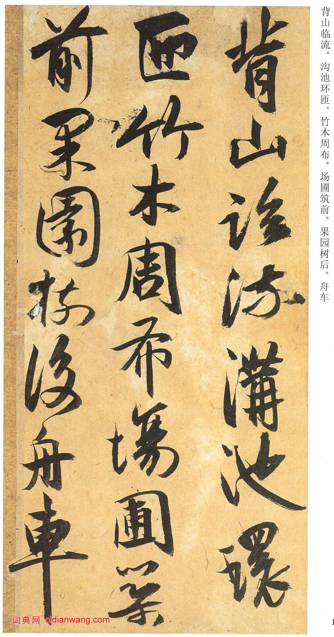 資源下載魏晉書法唐朝書法宋朝書法元朝書法明朝書法清朝書法近現代書法字典網>> 歷代書法>> 明朝>> 祝允明行草·歸田賦(7)正文 祝允明行草·歸田賦(7)作者:祝允明 書體:行書 首 頁 上一頁 2 3 4 5 6 7 8 9 10 11 下一頁 尾 頁 全文2016-1-6 12:26:12 祝允明的相關書法作品:祝允明行草《滿江紅》 祝允明草書《洛神賦》 祝允明楷書《燕喜亭等四記》 祝允明楷書《祖允暉慶誕記》 祝允明《行楷洛神賦卷》 祝允明草書《前赤壁賦》 祝允明草書《桃源圖詩冊》 祝允明草書《滕王閣序並詩》 祝允明《草書杜甫詩軸》 相關文章:文徵明行書《右登玄墓扇面》 (行書)文徵明行書《右登玄墓扇面》釋文: 金銀宮闕變林(丘),前度遊人已白頭,一笑正春如...鄭思肖《跋葉鼎隸書金剛經冊》 (行草)鄭思肖宋末元初詩人、畫家,連江(今屬福建)人。原名不詳,宋亡後改名思肖,因肖是宋...祝允明《草書杜甫秋興詩》 (草書)【釋文】昆明池水漢時功,武帝旌旗在眼中。織女機絲虛夜月,石鯨鱗甲動秋風。波飄菰米...鮮于樞·跋張先《十詠圖》 (行草)鮮于樞跋張先《十詠圖》,故宮博物館藏。《十詠圖》卷,宋,張先繪,絹本,淡設色,畫...鍾繇《宣示表》 (楷書)《宣示表》故宮博物院藏,梁武帝蕭衍譽道“勢巧形密,勝於自運”。筆法質樸渾厚,雍容...米芾行書《離騷經》 (行書)米芾書《離騷經》系行楷,原墨跡為紙本冊頁。凡二十六開,每開二幅,每幅五行,每行字...于右任《楷書曾孟鳴碑》 (楷書)于右任《楷書曾孟鳴碑》,墨拓 ,1929年作,邵力子撰文,于右任先生書丹,陝西...蘇軾行書《春中帖》 (行書)蘇軾行書《春中帖》 紙本,縱28.2cm 橫43.1cm 故宮博物院藏。此帖是蘇...趙孟頫行草《宗陽宮帖》 (行草)釋文:孟頫記事再拜。彥明郎中鄉弟足下。前者所言宗陽宮借房。請任先生開講。今已借得...鄧文原行書《家書帖》 (行書)《家書帖》頁,元,鄧文原書,紙本,縱31.2cm,橫34.5cm,行書。北京故宮...