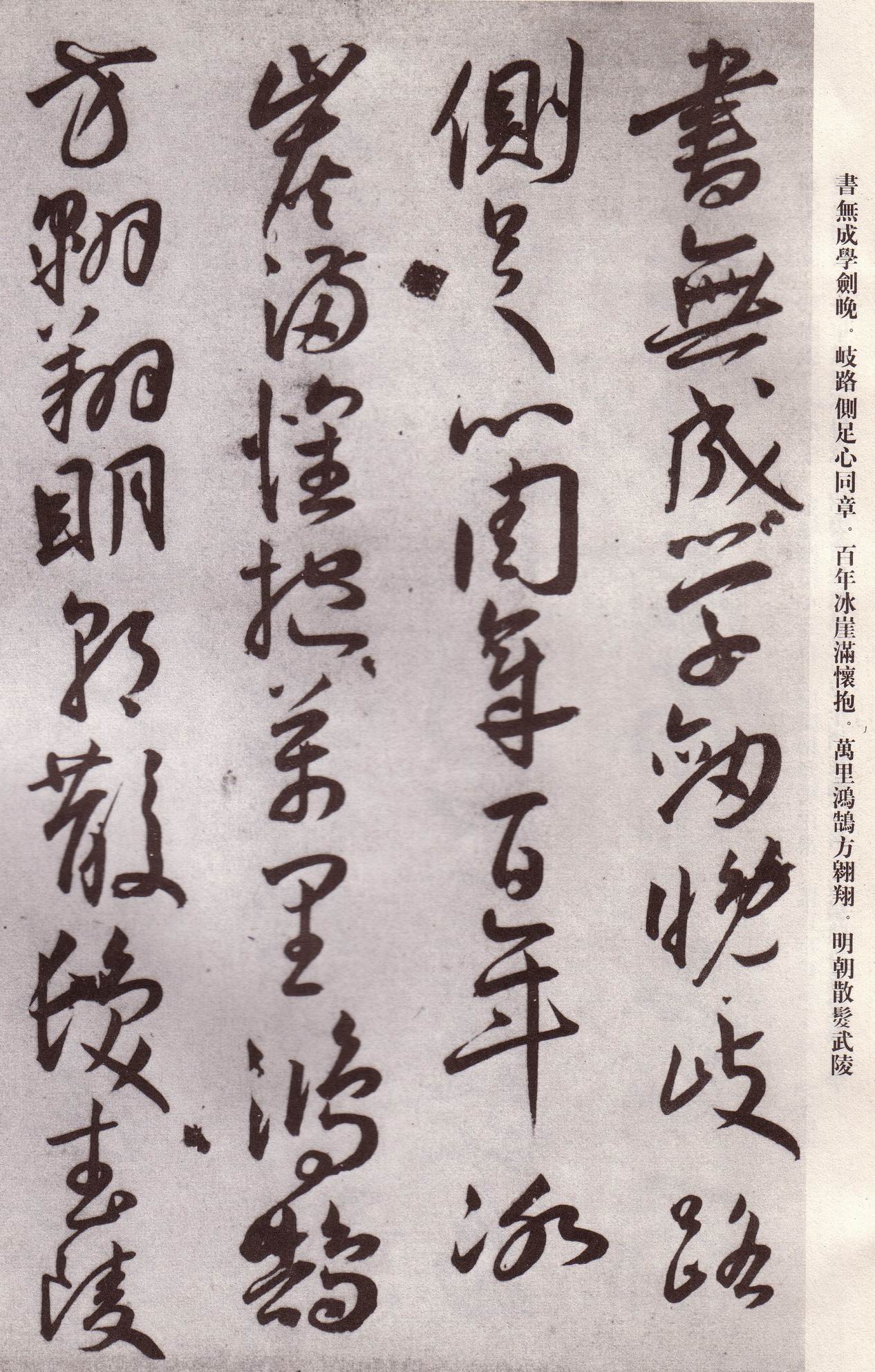 資源下載魏晉書法唐朝書法宋朝書法元朝書法明朝書法清朝書法近現代書法字典網>> 歷代書法>> 明朝>> 王寵·自書雜詩二種(3)正文 王寵·自書雜詩二種(3)作者:王寵 書體:草書 <首 頁 上一頁 1 2 3 4 5 6 7 8 9 10 下一頁 尾 頁王寵的相關書法作品:王寵草書《李白古風詩卷》 王寵草書《送李願歸盤谷序》 王寵小楷《為海濱先生書五言詩扇》 王寵行書跋《管道升書卷》 王寵小楷《送陳子齡會試詩》 王寵·小楷南華真經 王寵草書《雜書帖》 王寵行草《名山時訪道五言詩》扇面 王寵《小楷五言詩扇面》 相關文章:黃道周行草《大滌山中贈孟閬庵詩軸》 (行草)黃道周《大滌山中贈孟閬庵詩軸》 絹本行草書 147.9×49.7cm 南京博...林瀚·跋王蒙《夏日山居圖》 (行書)林瀚跋王蒙《夏日山居圖》,行書,橫36.2厘米。北京故宮博物院藏。魯迅《錄李賀綠章封事句橫幅》 (行書)魯迅《錄李賀綠章封事句橫幅》 20.7×113cm 1936年 上海魯迅紀念館...顏真卿楷書《東方朔畫贊碑》 (楷書)《東方朔畫贊碑》全稱《漢太中大夫東方先生畫贊碑》。自署天寶十三載(754年)十二...惲壽平《臨帖三種》 (行書)惲壽平《臨帖三種》,17×50.8cm。美國紐約大都會藝術博物館藏,顧洛阜(J...蘇大年·跋趙孟堅《行書自書詩卷》 (行書)蘇大年跋趙孟堅《行書自書詩卷》,行書。上海博物館收藏。趙之謙《行書秋草水雲七言聯》 (行書)趙之謙《行書秋草水雲七言聯》紙本行書 130×30cm×2 君匋藝術館藏 釋...王羲之《蘭亭序》 (行書)神龍本(馮承素摹本)【釋文】永和九年,歲在癸丑,暮春之初,會於會稽山陰之蘭亭,修...王志《一日無申帖》 (不詳)【釋文】臣六代從叔祖梁中書令臨汝安侯志書。一日,無申只□正屬雨氣方昏,得告深慰。...朱偁《行書五言詩軸》 (行書)朱偁《行書五言詩軸》紙本行書 133.6×31.8cm 上海博物館藏釋 文:歸...
