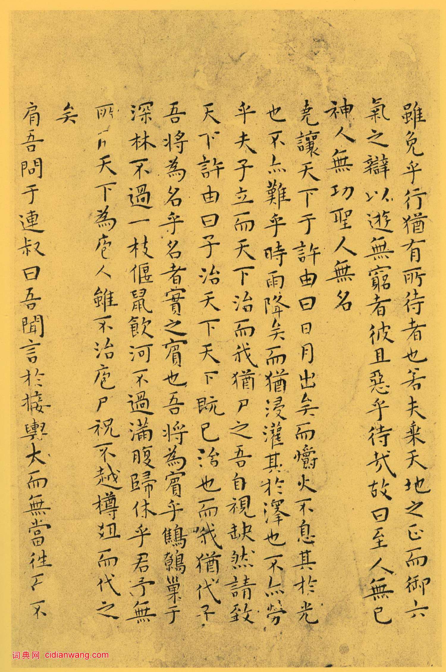 書法欣賞魏晉書法唐朝書法宋朝書法元朝書法明朝書法清朝書法近現代書法字典網>> 歷代書法>> 明朝>> 王寵·小楷南華真經(2)正文 王寵·小楷南華真經(2)作者:王寵 書體:小楷 首 頁 上一頁 1 2 3 4 5 6 7 8 9 10 下一頁 尾 頁王寵的相關書法作品:王寵的行書冊頁《王寵書王昌齡詩卷》 王寵小楷《送陳子齡會試詩》 王寵《致王守五札》之一 王寵《草書五言詩》軸 王寵草書《李白古風詩卷》 王寵·小楷臨黃庭經 王寵草書《水綠天微霽五言詩軸》 王寵草書《自書五憶歌》 王寵小楷《游包山集》 相關文章:裴休·圭峰禪師碑 (楷書)《圭峰禪師碑》全稱“唐故圭峰定慧師傳法碑並序”,又名《圭峰定慧禪師碑》,簡稱《圭...張宇初·跋《宋拓黃庭經》 (楷書)【釋文】右黃庭經一帖。嘗聞之前輩在元盛時吾山所藏。迨八十餘本。於中此本最為精善。...朱耷行書《臨河序》 (行書)朱 耷 行書《臨河序》水墨紙本 1697年 150×90.3cm (原為廣東五...懷素《苦筍帖》 (草書)【釋文】苦筍及茗異常佳,乃可逕來。懷素上。懷素《苦筍帖》卷,草書,絹本,無年款。...魯迅行書《錄老子語贈長尾景和軸》 (行書)魯迅 《錄老子語贈長尾景和軸》 214.5×60.5cm 1931年 北京魯迅...譚延闓《草書臨十七帖四條屏》 (草書)譚延闓《草書臨十七帖四條屏》紙本草書 173×41.8cm×4 台北故宮博物...何焯行書《趙嘏“汾上宴別”詩軸》 (行書)何焯《趙嘏“汾上宴別”詩軸》紙本行草 113×39.9cm 南京博物院藏【資料...阮元·《石畫記》底稿 (行書)阮元《石畫記》底稿,紙本,大小不一。阮元在任雲、貴總督時,曾在許多具有天然圖畫的...蘇軾行楷《祭黃幾道文卷》 (行楷)《祭黃幾道文卷》行楷書 縱31.6cm 橫121.7cm 1087年 上海博物館...趙孟頫《靈隱大川濟禪師塔銘》墨跡本 (行書)《靈隱大川濟禪師塔銘》原文為浙江靈隱禪寺大川禪師(普濟)所書的塔銘。 此作縱34...