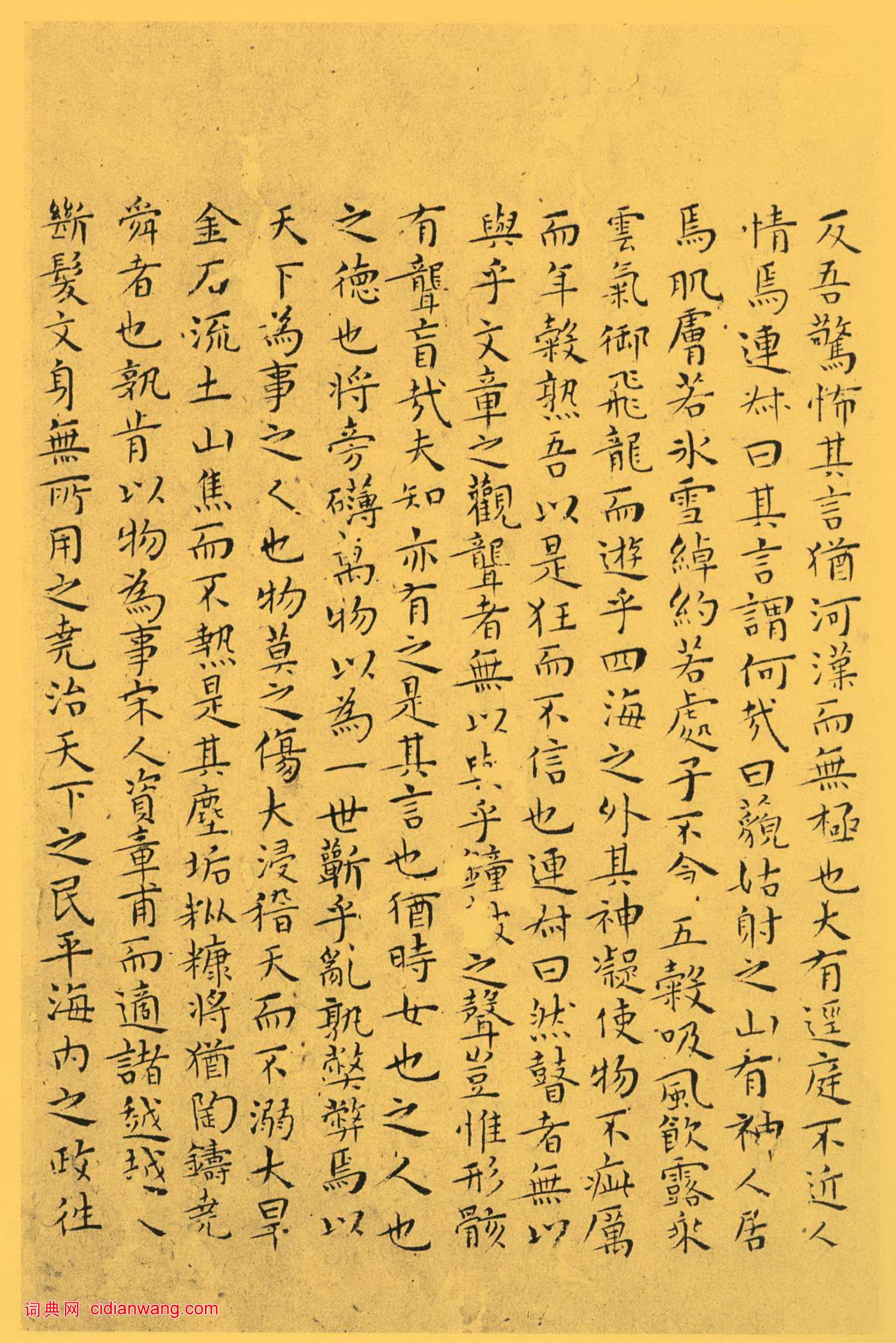 書法欣賞魏晉書法唐朝書法宋朝書法元朝書法明朝書法清朝書法近現代書法字典網>> 歷代書法>> 明朝>> 王寵·小楷南華真經(3)正文 王寵·小楷南華真經(3)作者:王寵 書體:小楷 首 頁 上一頁 1 2 3 4 5 6 7 8 9 10 下一頁 尾 頁王寵的相關書法作品:王寵行書《夜燕石湖草堂等詩卷》 王寵小楷《為海濱先生書五言詩扇》 王寵行草《五言律詩》卷 王寵草書《自書五憶歌》 王寵小楷《游包山集》 王寵《行書西苑詩》卷 王寵《小楷詩稿》 王寵行書《致南村書》 王寵草書《送友生游茅山詩》 相關文章:劉墉行書《錄杜甫贈李白詩頁》 (行書)劉墉《錄杜甫贈李白詩頁》紙本行書 18.5×11.7cm 台北故宮博物院藏釋文...米芾《蜀素帖》 (行書)米芾蜀素帖實在精妙北宋時,蜀地(四川)生產一種質地精良的本色絹,稱為蜀素。有個叫...趙令畤《賜茶帖》 (行書)【釋文】令畤頓首: 辱惠翰,伏承久雨起居佳勝。蒙餉梨栗,愧荷。比拜上恩賜茶,分一...王庭筠《題幽竹枯槎圖》 (行書)《題幽竹枯槎圖》釋文:黃華山真隱,一行涉世,便覺俗狀可憎,時拈禿筆作幽竹枯槎,以...張即之行書《致殿元學士尺牘》 (行書)張即之《致殿元學士尺牘》冊 紙本(牙色印花粉箋)行書 30.7×53.6cm ...王鐸草書《臨王曇首昨服散帖》 (草書)王鐸《臨王曇首昨服散帖》草書絹本, 227×47cm 順治三年(1646) 廣...張瑞圖行書《赤壁懷古大江東去》 (行書)張瑞圖《赤壁懷古大江東去》書畫合卷 綾本 27.9×320厘米 崇禎二年(16...左宗棠行書《得意清心七言聯》 (行書)左宗棠《行書“得意清心”七言聯》 湖南譚國斌當代藝術博物館藏釋文:得意無言唯見道...王羲之《筆勢論十二章》釋文告汝子敬:吾察汝書性過人,仍未閒規矩。父不親教,自古有之。今述《筆勢論》一篇,一...黃自元楷書臨《九成宮醴泉銘》 (楷書)黃自元,字敬輿,號澹叟,湖南安化縣龍塘鄉人。清代楷書家。1867年(同治六年)舉...