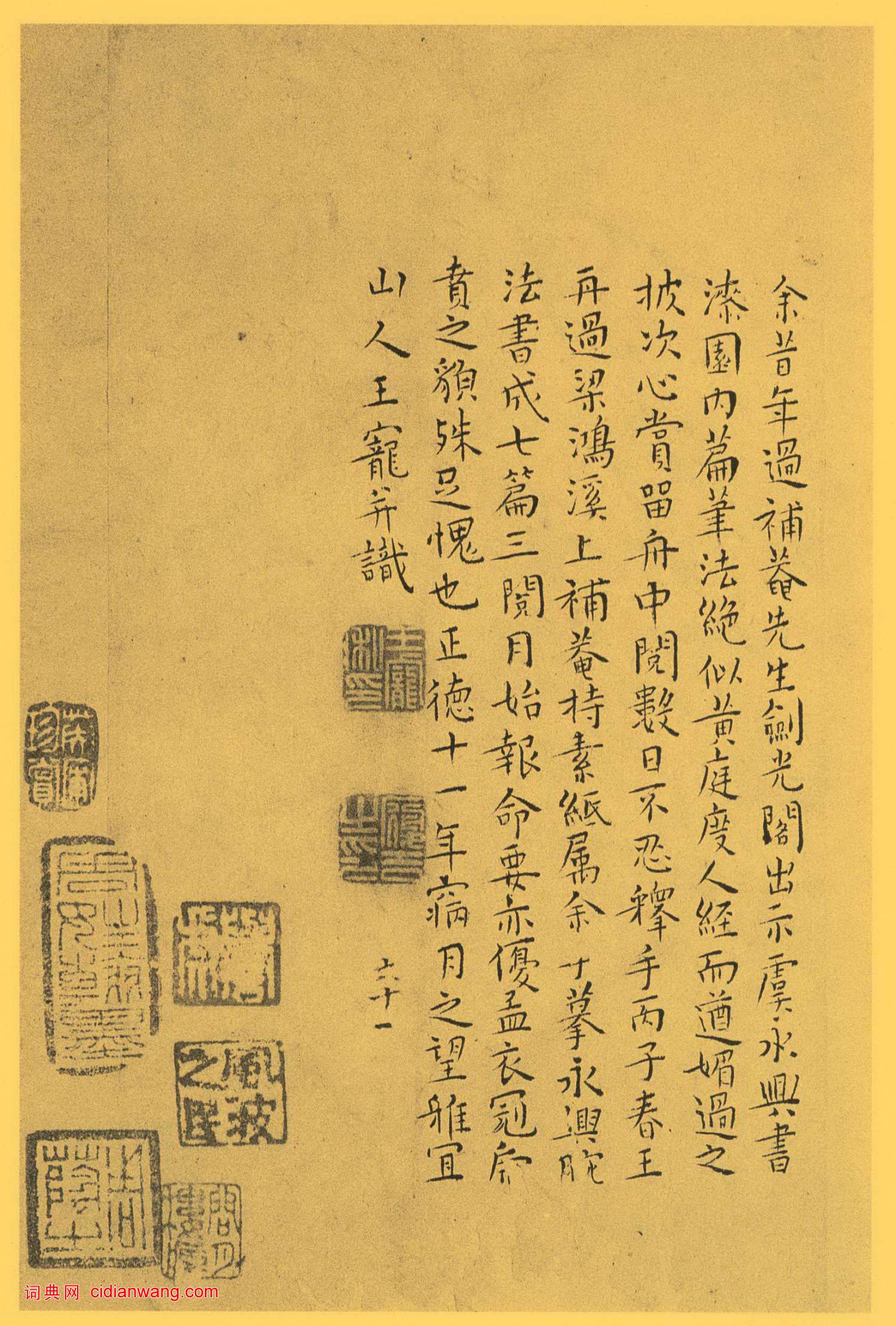 書法欣賞魏晉書法唐朝書法宋朝書法元朝書法明朝書法清朝書法近現代書法字典網>> 歷代書法>> 明朝>> 王寵·小楷南華真經(31)正文 王寵·小楷南華真經(31)作者:王寵 書體:小楷 首 頁 上一頁 22 23 24 25 26 27 28 29 30 31 王寵的相關書法作品:王寵行草《名山時訪道五言詩》扇面 王寵小楷《辛巳書事詩七首》 王寵《小楷五言詩扇面》 王寵草書《李白古風詩卷》 王寵草書《雜書帖》 王寵草書《送李願歸盤谷序》 王寵《致王守五札》之一 王寵草書《致石壁尊兄書札》 王寵行書《夜燕石湖草堂等詩卷》 相關文章:蔣山卿·跋虞世南《摹蘭亭序》 (行草)蔣山卿跋虞世南《摹蘭亭序》,縱24.5厘米。現藏於北京故宮博物院。馮文蔚小楷臨《九成宮》 (小楷)用硬筆臨摹傳統的毛筆書法字帖,很少有合適的選擇。很多書友擅長硬筆書法,又想向歐楷...文徵明《行草口號十首卷》 (行草)明代文徵明書法作品欣賞《行草口號十首卷》紙本,高28.5厘米,縱310.6厘米,...蔡京·聽琴圖題詩 (行書)蔡京《聽琴圖題詩》,北京故宮博物院藏。《聽琴圖》是宋徽宗趙佶人物畫的代表作。左上...鮮于樞行草《書蘇軾海棠詩卷》 (行草)鮮于樞《書蘇軾海棠詩卷》 紙本34.5X584cm 1301年大德五年書 北...鍾繇《薦季直表》 (楷書)鍾繇書於魏黃初二年(221),楷書,書時鐘繇已七十高齡。此表內容為推薦舊臣關內侯...王守仁草書 《龍江留別詩》 (草書)王守仁《龍江留別詩》紙本 草書 28.1×296.6厘米 正德十一年(1516...楊妹子·詩一首 (楷書)楊妹子《詩一首》,楷書,23.2×24.4cm,美國紐約大都會博物館藏。釋文:...龔賢《行草書七律詩軸》 (行草)龔賢《行草書七律詩軸》紙本行草書 123.3×54.2cm 北京故宮博物院藏...吳大澂散氏盤集字聯 (篆書)先秦人寫大篆,未經秦人精減,筆意豐富,結體多姿,還是蠻有意思的。吳大澂散氏盤集字...