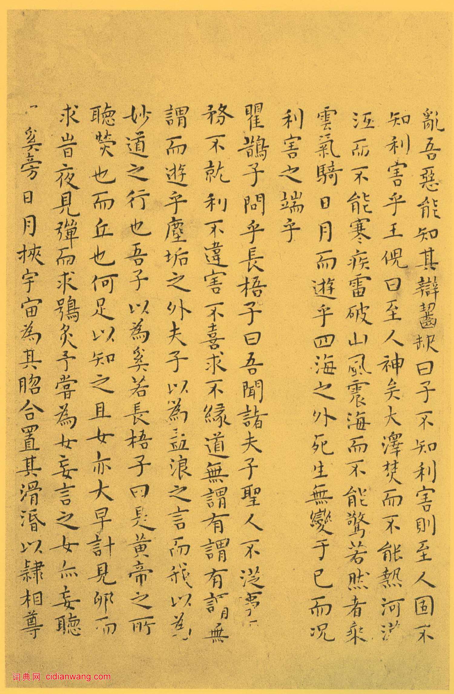 書法欣賞魏晉書法唐朝書法宋朝書法元朝書法明朝書法清朝書法近現代書法字典網>> 歷代書法>> 明朝>> 王寵·小楷南華真經(9)正文 王寵·小楷南華真經(9)作者:王寵 書體:小楷 首 頁 上一頁 5 6 7 8 9 10 11 12 13 14 下一頁 尾 頁王寵的相關書法作品:王寵的行書冊頁《王寵書王昌齡詩卷》 王寵小楷《游包山集》 王寵《行書西苑詩》卷 王寵行書《玄墓之行帖》 王寵《小楷五言詩扇面》 王寵草書《水綠天微霽五言詩軸》 王寵小楷《送陳子齡會試詩》 王寵行書《致尊師書札》 王寵草書《送李願歸盤谷序》 相關文章:東晉《高崧夫人謝氏墓誌》 (楷書)東晉《高崧夫人謝氏墓誌》,長方形青灰大磚,單面雙刀陰刻,志長50.5厘米、寬25...皇甫沖·題唐寅《金昌送別圖》詩 (行書)【釋文】春日送忍齋母舅先生招游虎丘,漫賦。名山叨勝分,軒盡喜返趨。盤送黃金饌,醪...祝允明·小楷洛神賦 (小楷)《契蘭堂帖》【釋文】洛神賦,陳思王撰。黃初三年,余朝京師,還濟洛川。古人有言,斯...文徵明行書《心經》 (行書)《心經》,全稱為《般若波羅蜜多心經》,是漢傳佛經中最短的一部,因其旨意精微且便於...陳淳《草書千字文》 (草書)陳淳《草書千字文冊》紙本 草書 32×16.5cm×17頁 嘉靖十七年(15...沈尹默楷書《孫禹行墓志銘》 (楷書)沈尹默楷書欣賞《孫禹行墓志銘》1928作,滄縣張繼撰文,高陽崔其樞篆蓋,吳興沈尹...文徵明《跋右軍十七帖》 (楷書)文徵明《跋右軍十七帖》,楷書。《十七帖》為書聖王羲之的草書代表之作,不過原跡早已...黃庭堅草書《書杜甫寄賀蘭銛詩》 (草書)黃庭堅《書杜甫寄賀蘭銛詩》 紙本 草書 34.7×69.6cm 北京故宮博物院...柳公權楷書《大唐迴元觀鐘樓銘》 (楷書)柳公權《大唐迴元觀鐘樓銘》 124×60cm 西安市和平門外出土《大唐迴元觀鍾...張駿·行書手札 (行書)張駿《手札》,北京故宮博物院藏。刊於《中國書法》雜誌1991年第一期(贈頁)。