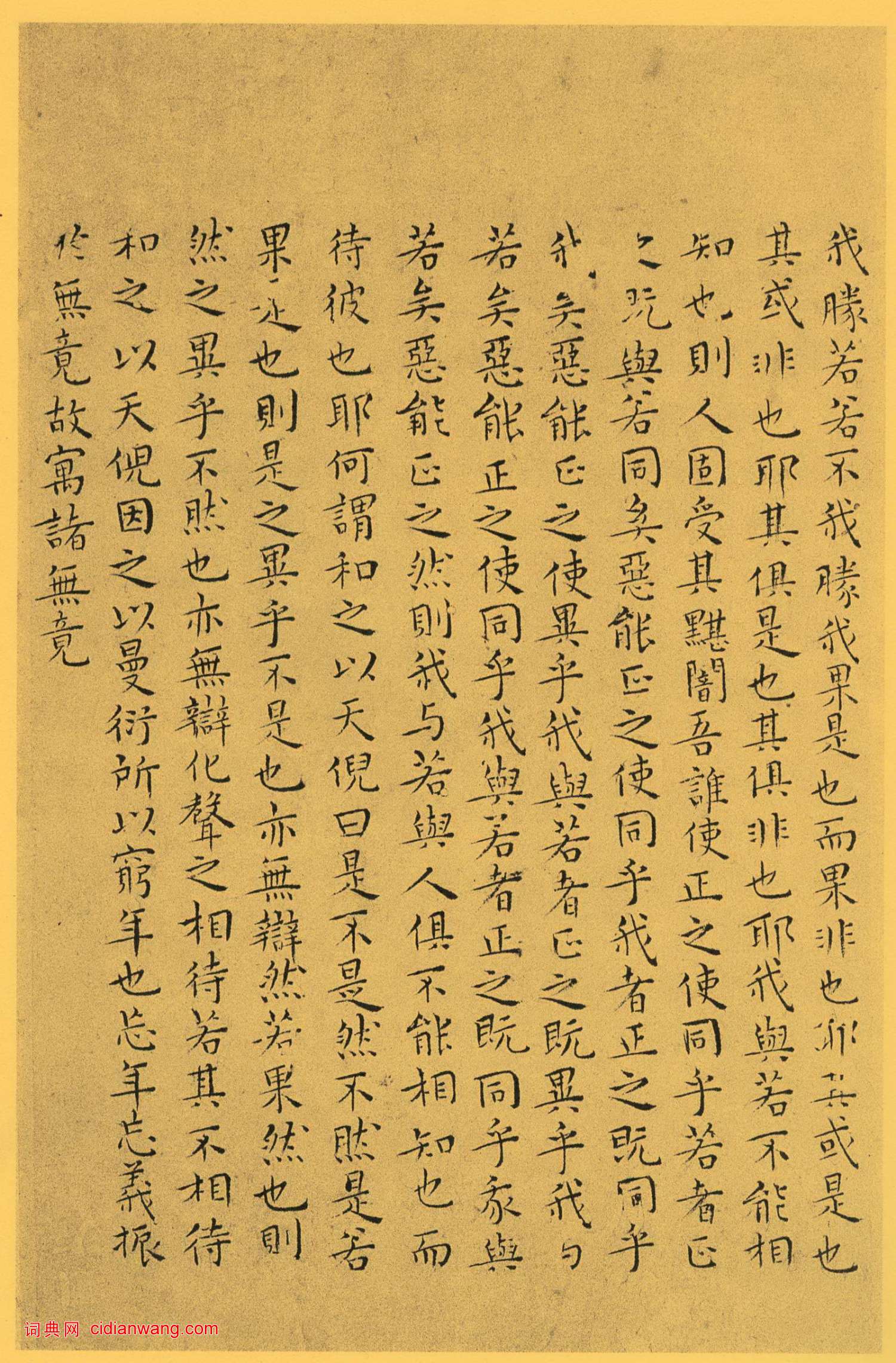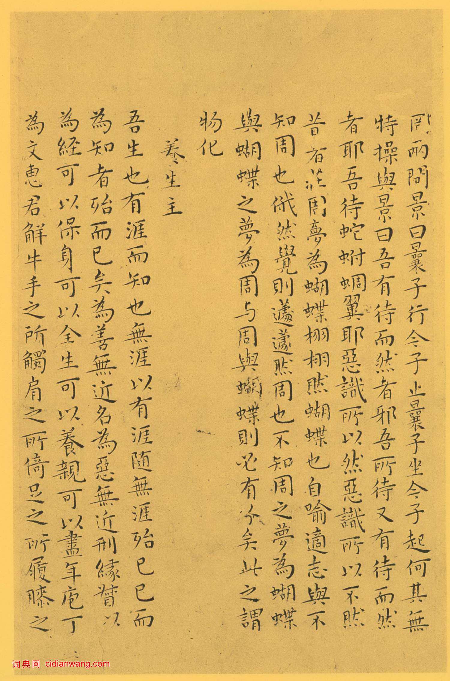 書法欣賞魏晉書法唐朝書法宋朝書法元朝書法明朝書法清朝書法近現代書法字典網>> 歷代書法>> 明朝>> 王寵·小楷南華真經(10)正文 王寵·小楷南華真經(10)作者:王寵 書體:小楷 首 頁 上一頁 6 7 8 9 10 11 12 13 14 15 下一頁 尾 頁王寵的相關書法作品:王寵行書《玄墓之行帖》 王寵草書《送友生游茅山詩》 王寵草書《水綠天微霽五言詩軸》 王寵《行草扇面》冊頁 王寵草書《自書五憶歌》 王寵《草書七律詩》軸 王寵《小楷詩稿》 王寵草書《雜書帖》 王寵《草書崔顥詩》軸 相關文章:陳鵬年《行書虎丘詩軸》 (行書)陳鵬年《行書虎丘詩軸》縱121.2厘米 橫50.2厘米 中國國家博物館藏釋 文:...蘇軾行書《令子帖》 (行書)蘇軾《令子帖》 書於紹元年(1094)。紙本。行書,尺牘一則。凡4行,計50字。...沈荃《行書臨爭座位帖軸》 (行書)沈荃《行書臨爭座位帖軸》綾本行書 238×50cm 天津博物院藏 【資料來源】...三國《天發神讖碑》拓本 (隸篆)《天發神讖碑》三國吳天璽元年(276年)刻,是吳最後一位君主孫皓因天降符瑞而立碑...劉致《跋鮮于樞草書韓愈進學解》 (行楷)【釋文】鮮于困學之書始學奧敦周卿竹軒後學姚魯 公雪齋為湖南憲司經歷見李北海嶽麓寺...項元汴·自題山水圖卷 (行書)項元汴行書自題《山水圖卷》,縱30.2cm。美國紐約大都會藏。張即之·汪氏報本庵記 (行楷)張即之《汪氏報本庵記》,紙本,行楷,縱29.3厘米,橫91.4厘米。小字行書38...南朝楷書《爨龍顏碑》 (楷書)在雲南陸良彩色沙林西面約二三公里的薛官堡斗閣寺大殿內,聳立著一塊古碑,這就是全國...吳熙載隸書《求珠倚杵七言聯》 (隸書)吳熙載《隸書“求珠倚杵”七言聯》紙本隸書 131.6×29.4cm×2 北京...薄紹之行書《宋給事中丹陽薄紹之書》 (行書)《淳化閣帖》卷八引《宋給事中丹陽薄紹之書》:“知弟定欲回換住止周鏇, 江參軍 甚...