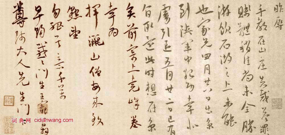 書法欣賞魏晉書法唐朝書法宋朝書法元朝書法明朝書法清朝書法近現代書法字典網>> 歷代書法>> 明朝>> 王寵·草書《山莊帖》正文 王寵·草書《山莊帖》作者:王寵 書體:草書 【釋文】昨辱手教,在山莊失裁答,罪罪,賤體稍佳,尚未全勝,游飲石湖之上未能也。家兄四月廿八日出京,到陝軍中紀功,幸北虜引退,五月廿二日已有旨取還,此時想在京矣。前寄上堯峰卷,幸為揮灑。山僧每來致懇,望勿紿其意,千萬早賜,感感。門生王寵百拜,尊師大人先生門下。王寵《草書山莊帖》,北京故宮博物院藏。鈐“王履吉印”白文印。1 2 下一頁 尾 頁 全文2015-3-28 19:51:32 王寵的相關書法作品:王寵草書《水綠天微霽五言詩軸》 王寵草書《送李願歸盤谷序》 王寵《草書崔顥詩》軸 王寵行草《名山時訪道五言詩》扇面 王寵草書《李白古風詩卷》 王寵草書《送友生游茅山詩》 王寵行草《五言律詩》卷 王寵·雜詩 王寵《小楷詩稿》 相關文章:文彥博·三札卷 (行草)【釋文】適見報狀,已差趙待制離、張都知茂叔鄖王葬禮使副送都廳。凡乾葬禮事節,速牒...米友仁《跋隋人出師頌》 (行書)米友仁《跋隋人出師頌》,行書。黃庭堅行書《李公麟五馬圖題記跋語》 (行書)黃庭堅《李公麟"五馬圖"題記跋語》(珂羅版)北京故宮博物院藏宋代傳世名作《五馬圖...周亮工行書《寒食登詩話樓詩扇》 (行書)周亮工《寒食登詩話樓詩扇》紙本行書 16.5×51cm 吉林省博物館藏 釋文:...黃侃《篆書日守天留七言聯》 (篆書)黃侃《篆書日守天留七言聯》 136×34.6cm×2 1924年作 湖北省博...沈周·跋陸游《懷成都十韻詩卷》 (行書)沈周跋陸游《懷成都十韻詩卷》,行草書,縱34.6cm。故宮博物院藏。王世貞·行書手札 (行書)王世貞行書手札。東漢隸書《孔宙碑》 (隸書)《孔宙碑》全稱《漢泰山都尉孔宙碑》,位於山東曲阜孔廟同文門東。碑主孔宙,是孔子的...陳永年草書《五律詩軸》 (草書)陳永年《五律詩軸》紙本草書 339×93.5cm 山東省博物館藏 圖片由可嘉...楊維楨行草《真鏡菴募緣疏卷》 (行草)楊維楨《真鏡菴募緣疏卷》 紙本 33.3×278.4cm 上海博物館藏 ...