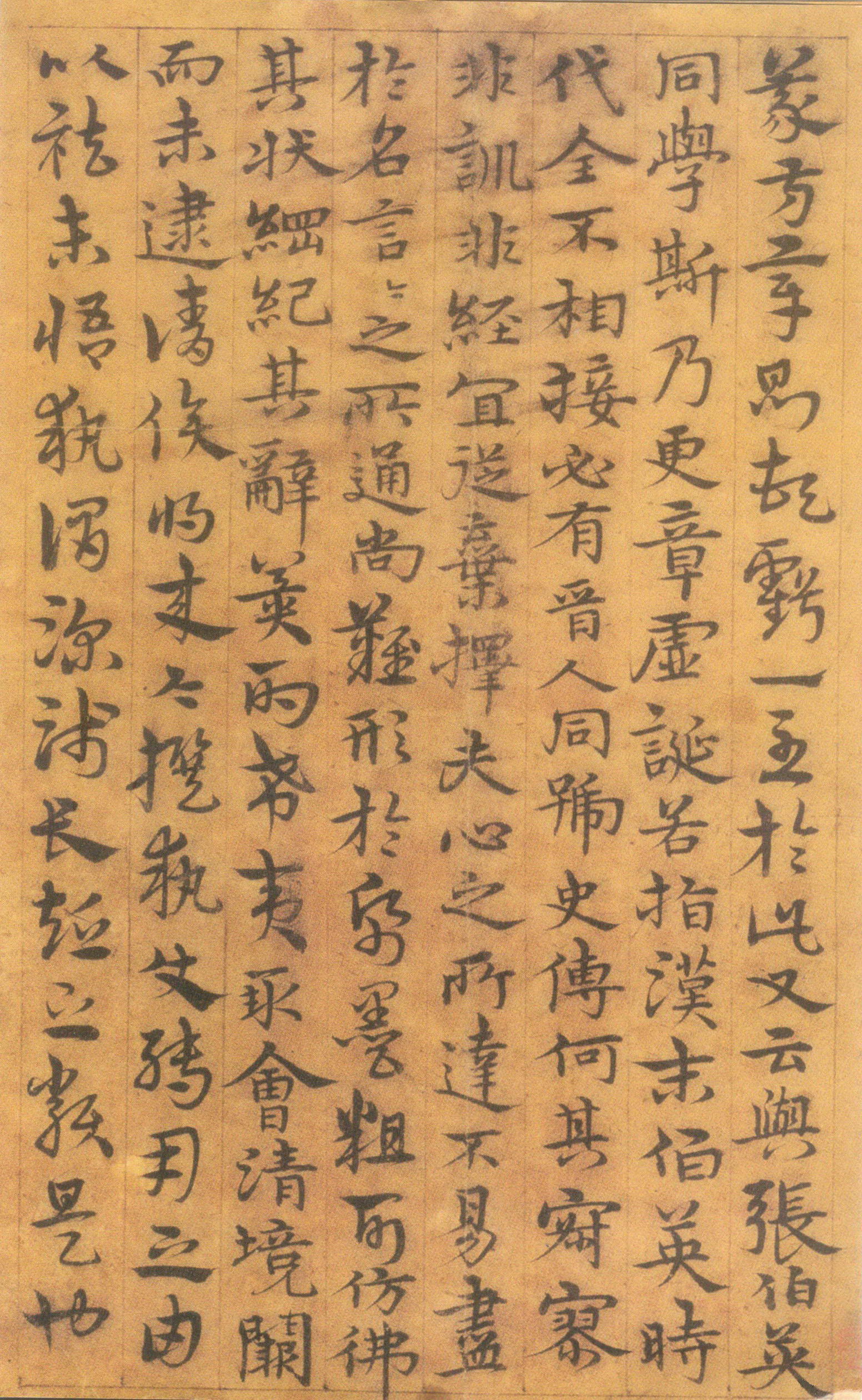 書法欣賞魏晉書法唐朝書法宋朝書法元朝書法明朝書法清朝書法近現代書法字典網>> 歷代書法>> 明朝>> 宋克·孫過庭書譜冊(4)正文 宋克·孫過庭書譜冊(4)作者:宋克 書體:行書 首 頁 上一頁 1 2 3 4 5 6 7 下一頁 尾 頁宋克的相關書法作品:宋克《急就章》 宋克《草書韓偓七絕條幅》 宋克·孫過庭書譜冊 宋克·張懷瓘論用筆十法 宋克章草《急就章》 宋克《唐張懷瓘論用筆十法》 宋克《唐張懷瓘論用筆十法》 宋克《閒居詩》 相關文章:瘞鶴銘 (楷書)《瘞鶴銘》殘片焦山摩崖石刻《瘞鶴銘》刻於南朝·梁(傳)天監十三年(514年),...王穉登·跋蘇軾《治平帖》 (楷書)王穉登跋蘇軾《治平帖》,楷書,縱29.2cm。北京故宮博物院藏。吳熙載隸書《求珠倚杵七言聯》 (隸書)吳熙載《隸書“求珠倚杵”七言聯》紙本隸書 131.6×29.4cm×2 北京...長沙窯詩文壺《古今車馬不謝》 (行書)行書——青釉褐彩“古今車馬不謝”題記壺 高17.8厘米 口徑9.4厘米 底徑9...吳大澂《篆書白鶴泉銘》 (篆書)吳大澂《篆書白鶴泉銘》 釋文:光緒十有八年,歲在壬辰九月九日,撫湘使者...張旭草書《十五日帖》 (草書)《十五日帖》 傳為張芝之作,或是唐代書法家張旭的作品,是一帖難得的草書墨跡。虞世南楷書集字唐詩《虞世南楷書集唐詩》是(2010年4月1日)西泠印社出版社出版的圖書。帖中的範字...張雨行書《自書雜詩冊》 (行書)至正五年(1345) 張雨《自書雜詩冊》粉花箋 23.7×15.3cm×24...黃庭堅草書《公以道安帖》 (草書)黃庭堅 草書《公以道安帖》《公以道安帖》乃山谷早期草書信札,約元祐初作於京師開封...董其昌·跋米友仁《瀟湘奇觀圖》 (行書)董其昌跋米友仁《瀟湘奇觀圖》,縱19.8cm,故宮博物館藏。題跋前後共三段。