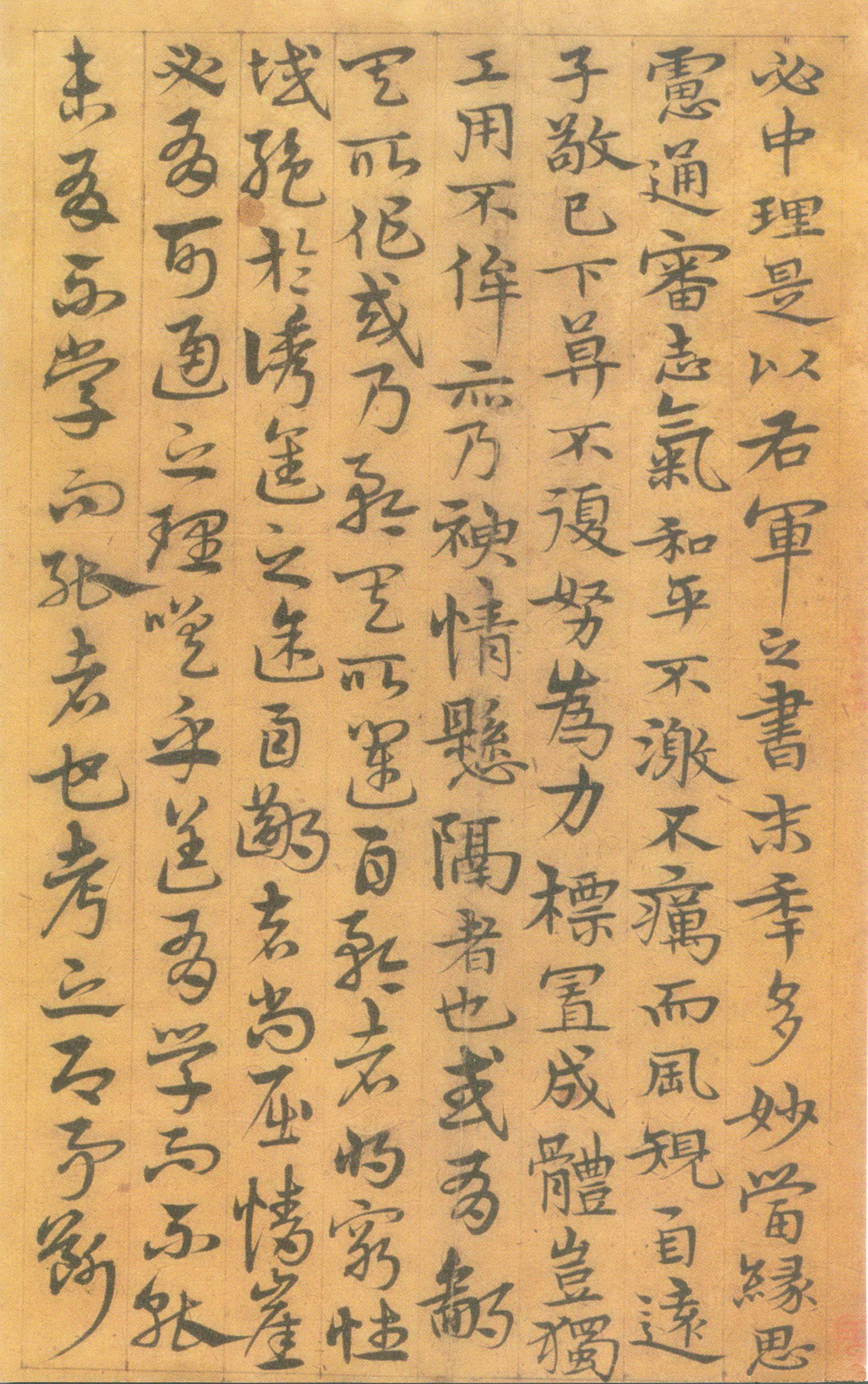 書法欣賞魏晉書法唐朝書法宋朝書法元朝書法明朝書法清朝書法近現代書法字典網>> 歷代書法>> 明朝>> 宋克·孫過庭書譜冊(7)正文 宋克·孫過庭書譜冊(7)作者:宋克 書體:行書 首 頁 上一頁 1 2 3 4 5 6 7 宋克的相關書法作品:宋克·孫過庭書譜冊 宋克·張懷瓘論用筆十法 宋克章草《急就章》 宋克《唐張懷瓘論用筆十法》 宋克《唐張懷瓘論用筆十法》 宋克《草書韓偓七絕條幅》 宋克《閒居詩》 宋克《急就章》 相關文章:文徵明《拙政園圖冊》 (行書)拙政園是蘇州園林中的經典之作,始建於明朝。明正德初年(16世紀初),因官場失意而...吳昌碩《篆書邊眉淮南七言聯》 (篆書)吳昌碩《篆書邊眉淮南七言聯》134×33cm×2 朱福元藏 釋文:邊眉還師辰...吳玉如《楷書毛澤東詩軸》 (楷書)吳玉如《楷書毛澤東詩軸》 釋文:一山飛峙大江邊,躍上蔥蘢四百鏇。冷眼向洋看世界,...鄧石如篆書《朱熹四齋銘》 (篆書)鄧石如篆書《朱熹四齋銘》在上海崇源2002秋季拍賣會拍賣至52.8萬元...倪元璐行書《致台翁手札》 (行書)倪元璐《致台翁手札》行書 此札內容為慰亡,寫得沉痛哀婉,但又以通脫之觀點為生者解...何紹基行書《論書橫披》 (行書)何紹基《行書論書橫披》行書釋文:【資料來源】湖南省博物館“《還原大師》——何紹基...沈曾植《行草書孟浩然夜泊牛渚詩軸》 (行草)沈曾植《行草書孟浩然夜泊牛渚詩軸》紙本行草書 147×40cm 嘉興博物館藏 ...沈曾植行書《臨法帖書屏》 (行書)沈曾植《臨法帖書屏》紙本 106.5×50.5cm×4 浙江省博物館藏 之三...文徵明行書題《滸溪草堂圖》 (行書)明代文徵明書法欣賞《為沈天民作滸溪草堂圖》,乙未臘月,文徵明66歲寫,遼寧省博物...蘇軾行書《王晉卿帖》 (行書)蘇軾行書《王晉卿帖》,元祐元年(1086),紙本,29.8*25.7cm,故宮博...