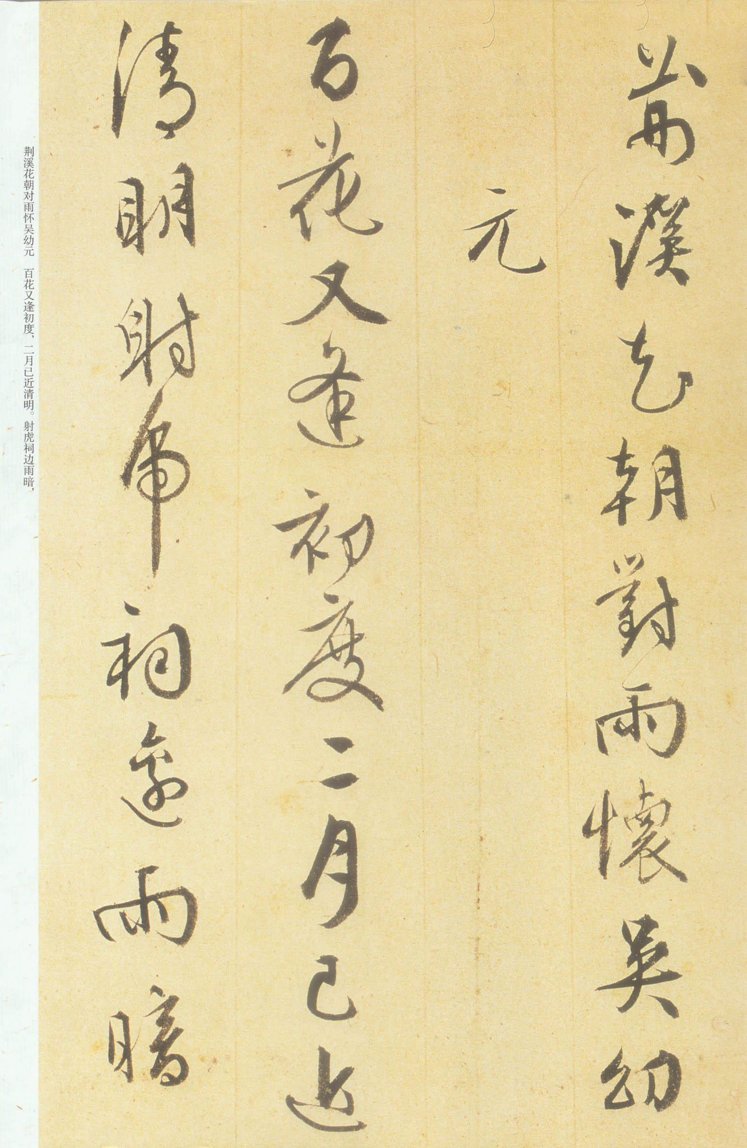 資源下載魏晉書法唐朝書法宋朝書法元朝書法明朝書法清朝書法近現代書法字典網>> 歷代書法>> 明朝>> 王穉登·義興雜詩冊(3)正文 王穉登·義興雜詩冊(3)作者:王穉登 書體:行書 首 頁 上一頁 1 2 3 4 5 6 7 8 9 10 下一頁 尾 頁王穉登的相關書法作品:王穉登·義興雜詩冊 王穉登·跋趙孟頫《心經行書冊》 王穉登·題周天球《桃花書屋書法卷》 王穉登·跋鮮于樞《韓愈送李願歸盤谷序卷》 王穉登行書《錄宋人語》 王穉登·跋蘇軾《治平帖》 相關文章:趙孟頫《秋深帖》 (行書)《秋深帖》,元,管道昇(趙孟頫)書,紙本,冊頁,縱26.9cm,橫53.3cm,...《聖教序》書法集字春聯快過年了,小編為大家準備了《聖教序》書法集字春聯供大家參考:趙孟頫楷書《東銘》 (楷書)趙孟頫楷書《東銘》書寫的是北宋哲學家、理學創始人張載的一篇文章。《東銘》即《砭愚...泰不華·陋室銘 (篆書)【釋文】山不在高,有仙則名;水不在深,有龍則靈。斯是陋室,唯吾德馨。苔痕上階綠,...唐寅行書《尺牘之二》 (行書)唐寅《尺牘之二》紙本行書 26.1×19.1cm 台北故宮博物院藏 釋文:別後...吳寬行楷《唐詩三首扇面》 (行楷)吳寬《唐詩三首扇面》紙本行楷書 成化二十二年(1486)上海博物館藏釋文:王粲...康有為《行書側身獨立七言聯》 (行書)康有為《行書側身獨立七言聯》紙本行書 150×39cm×2 浙江省博物館藏 ...趙佶草書《絳霄紫庭帖》墨拓 (草書)宋 趙佶《絳霄紫庭帖》(墨拓)28×82cm 原石藏安徽省博物館 【釋文】絳霄...唐寅行書 《秋風紈扇圖題詩》 (行書)唐寅《秋風紈扇圖》紙本水墨 77.1×39.3cm 上海博物館藏 此畫盡顯了畫...吳昌碩《篆書臨散氏盤銘軸》 (篆書)吳昌碩《篆書臨散氏盤銘軸》紙本篆書 149.8×25.5cm 1922年 浙江...