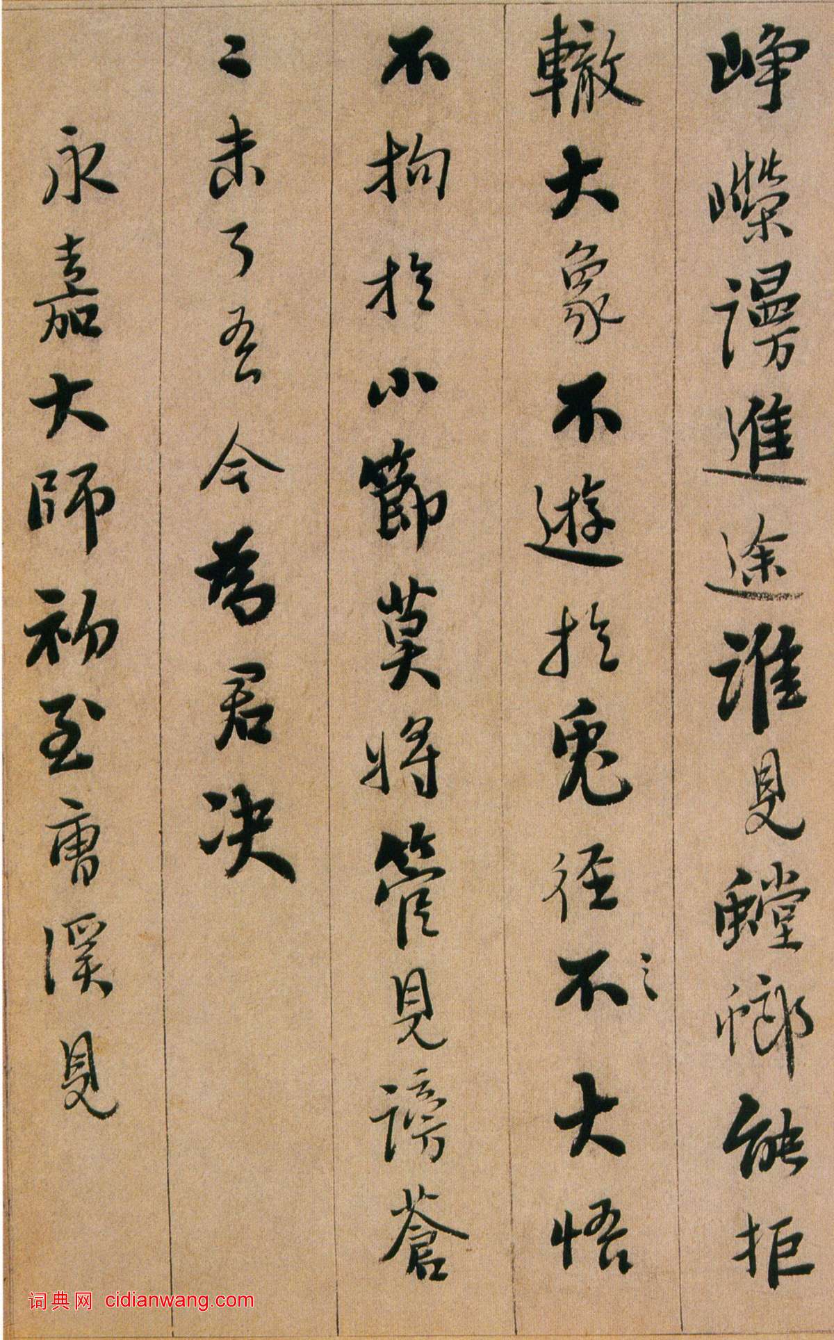 資源下載魏晉書法唐朝書法宋朝書法元朝書法明朝書法清朝書法近現代書法字典網>> 歷代書法>> 明朝>> 憨山·永嘉真覺大師證道歌(17)正文 憨山·永嘉真覺大師證道歌(17)作者:憨山 書體:行書 首 頁 上一頁 9 10 11 12 13 14 15 16 17 18 下一頁 尾 頁 全文2016-1-11 12:45:31 憨山的相關書法作品:憨山·永嘉真覺大師證道歌 憨山《永嘉真覺大師證道歌》 相關文章:唐寅《行書七律四首詩卷》 (行書)唐寅《行書七律四首詩卷》紙本行書 23×286cm 天津博物館藏 釋文:聞太原...沈尹默臨《蘭亭序》書軸 (行書)沈尹默1947年作,1997-04-18中國嘉德1997春季拍賣會。鈐印:吳興溪...傅蓮蘇《行書杜甫飲中八仙歌》 (行書)傅蓮蘇是傅山之孫,傅眉之子,生卒年不詳,字岩裔(一字長芳),山西陽曲人。才華橫溢...倪瓚題《水竹居圖軸》 (小楷)倪瓚《水竹居圖軸》 紙本設色 縱53.5厘米 橫28.2厘米 中國國家博物館藏倪...王羲之草書《漢時帖》 (草書)《漢時帖》前二行為唐人寫本,後段為元趙孟頫補書。按《漢時帖》為王羲之《十七帖》中...黃庭堅草書《書杜甫寄賀蘭銛詩》 (草書)黃庭堅《書杜甫寄賀蘭銛詩》 紙本 草書 34.7×69.6cm 北京故宮博物院...顏真卿行書《鄒游帖》 (行書)顏真卿《鄒游帖》拓本。行書,信札。35.6×15.5厘米。凡8行,計45字。約...任詢行書杜甫《古柏行》 (行書)行書杜甫《古柏行》 拓片 日本京都藤井有鄰館藏釋文: 孔明廟前有老柏,柯如青銅根...曹鴻勛楷書《重修玉清宮碑銘》 (楷書)曹鴻勛長於書法,專攻歐陽詢《九成宮醴泉銘》,兼工漢隸,偶作墨竹亦善。原立於濰縣城...揭奚斯楷書《陸柬之文賦跋》 (楷書)揭奚斯《陸柬之文賦跋》,楷書。紙本,台北故宮博物院藏。其筆法學習東晉王獻之,頗有...